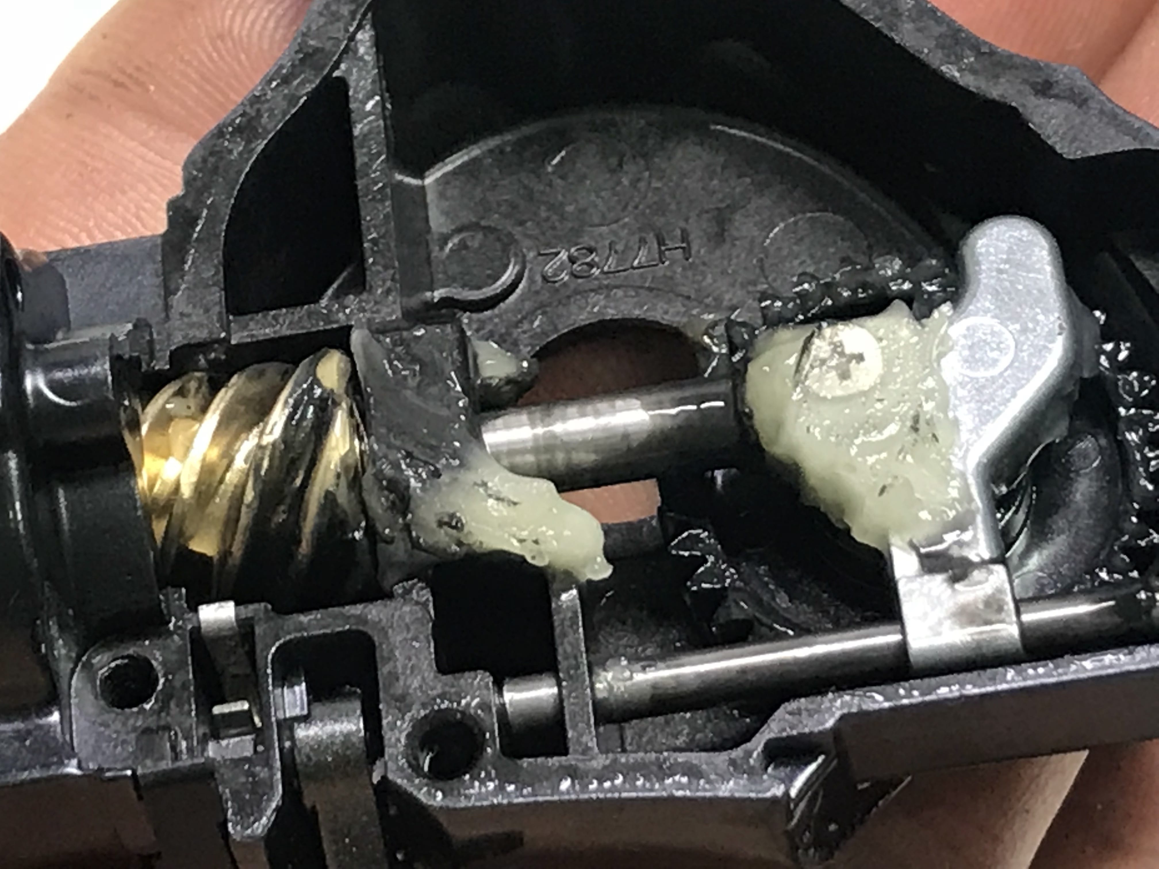 우측커버 나사하나가 고착보였으며 나사선이 뭉개져 있었습니다.