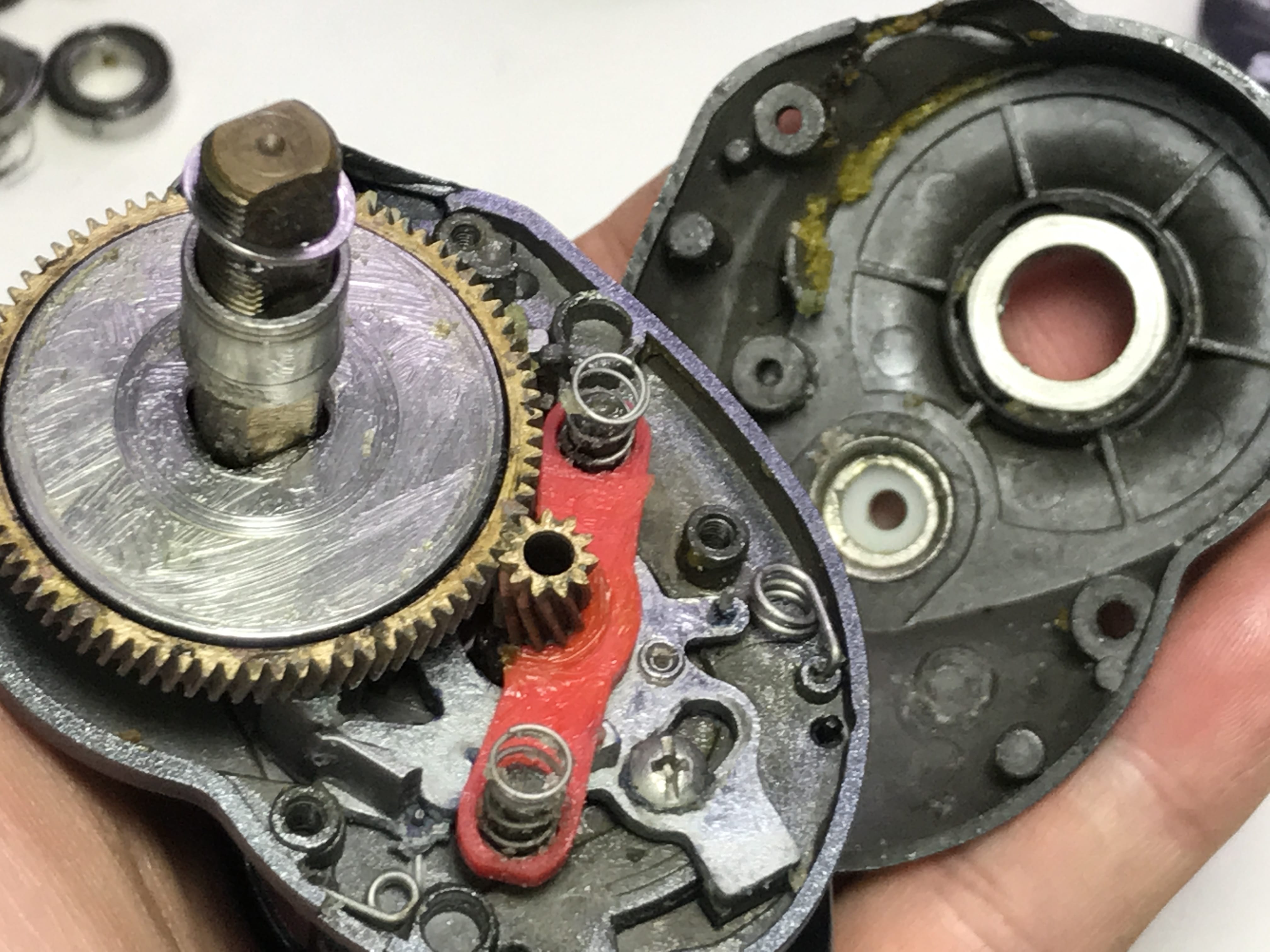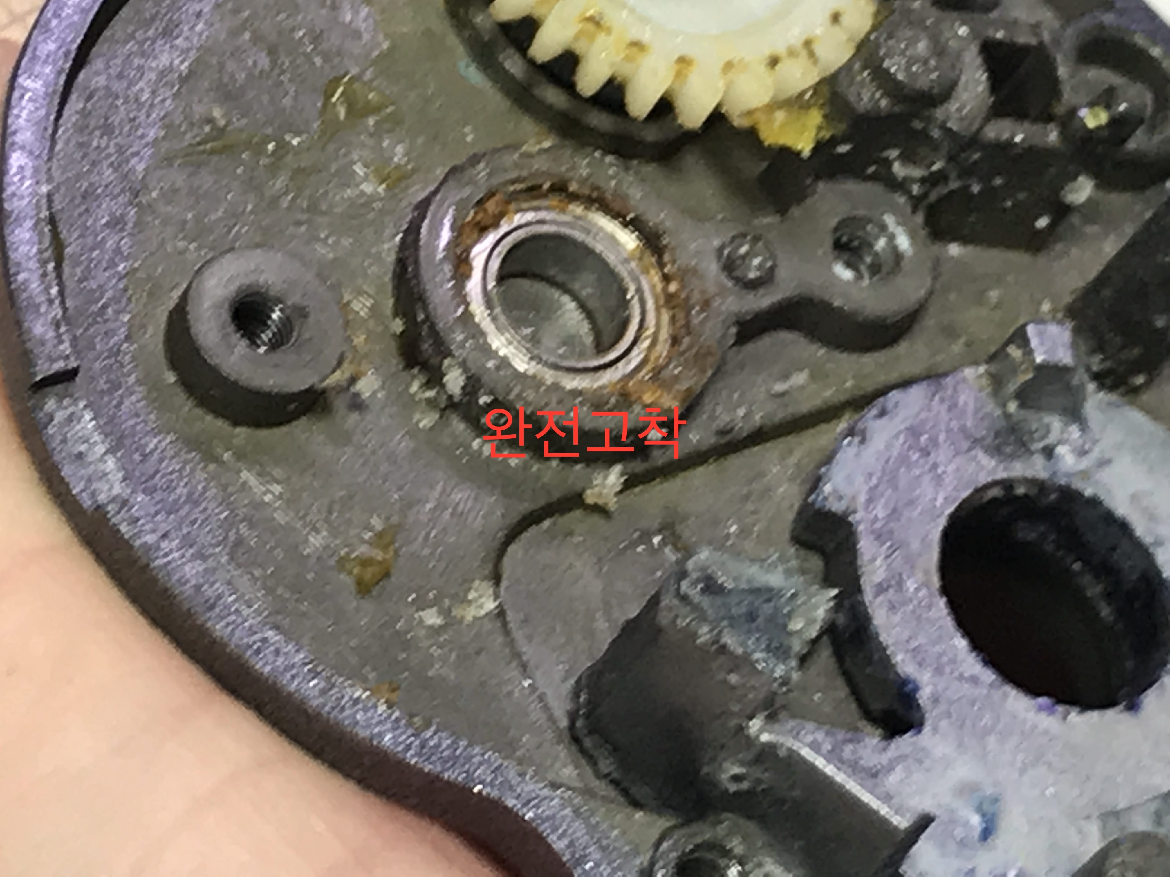 전부 조립후 확인해 보니 기어사이 손상으로
