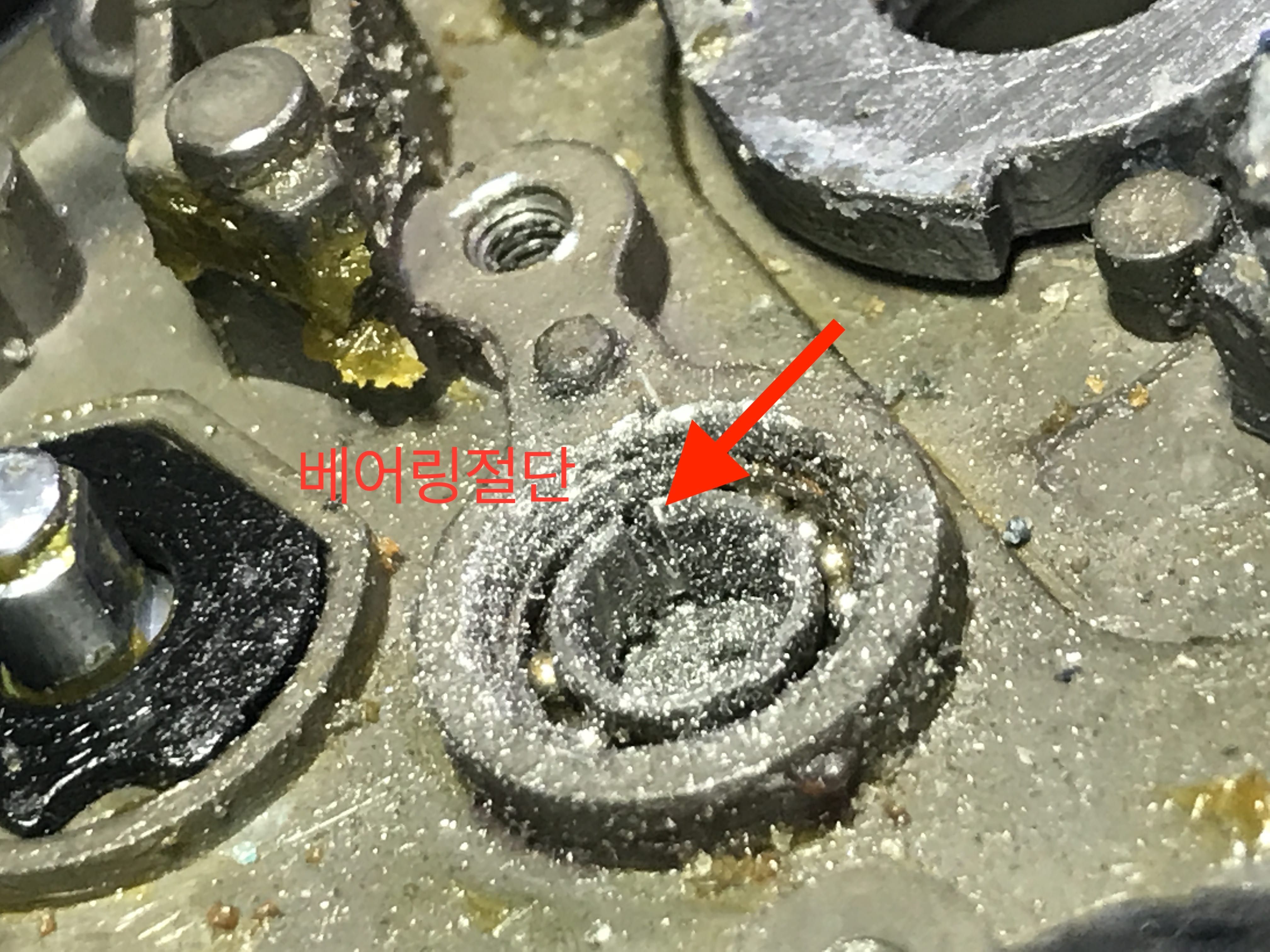 내부 분해하면서 샤프트축 아래 베어링 완전 고착