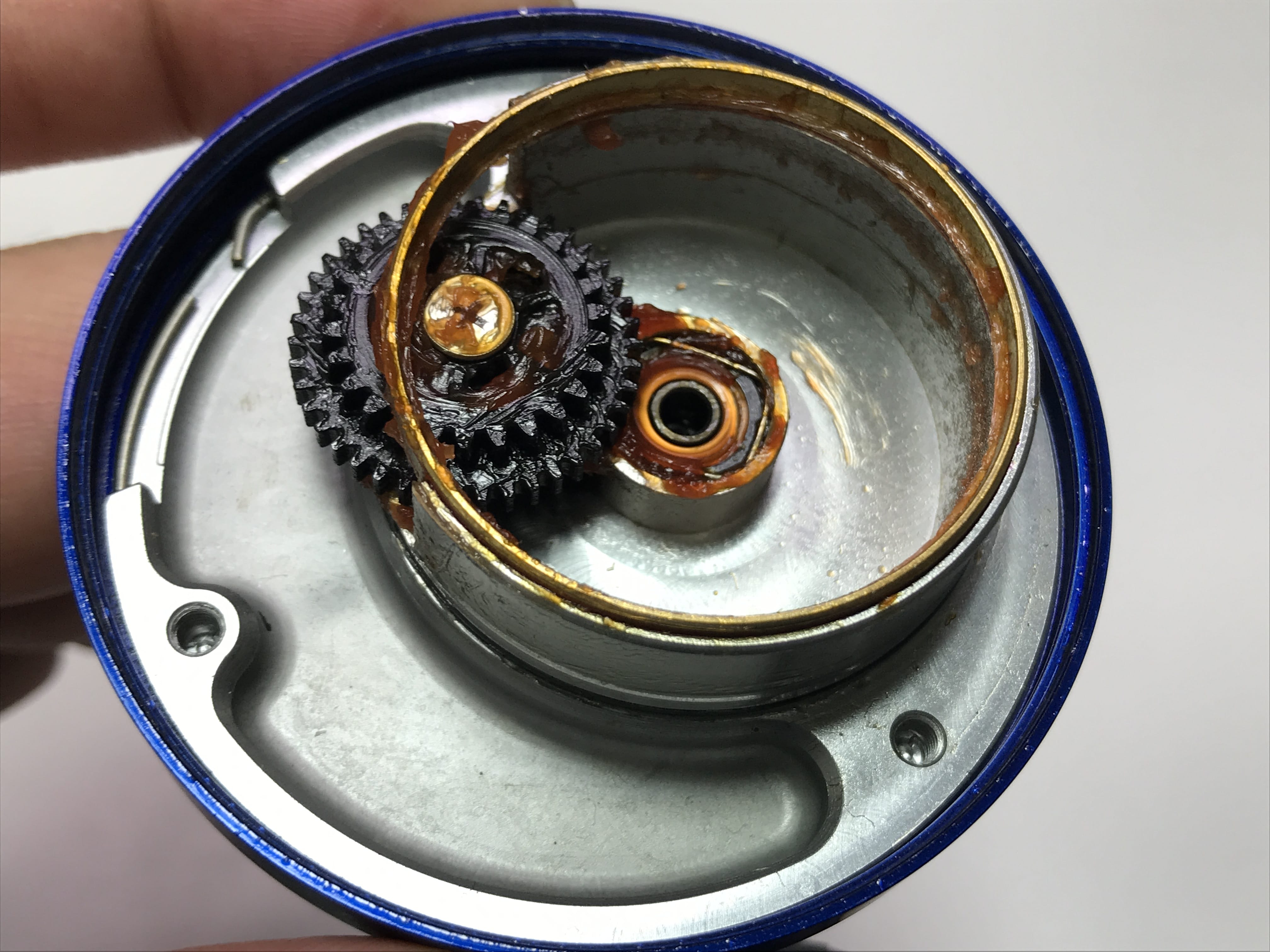 스풀 뚜겅쪽 기어 부분 나사 고착이었습니다.