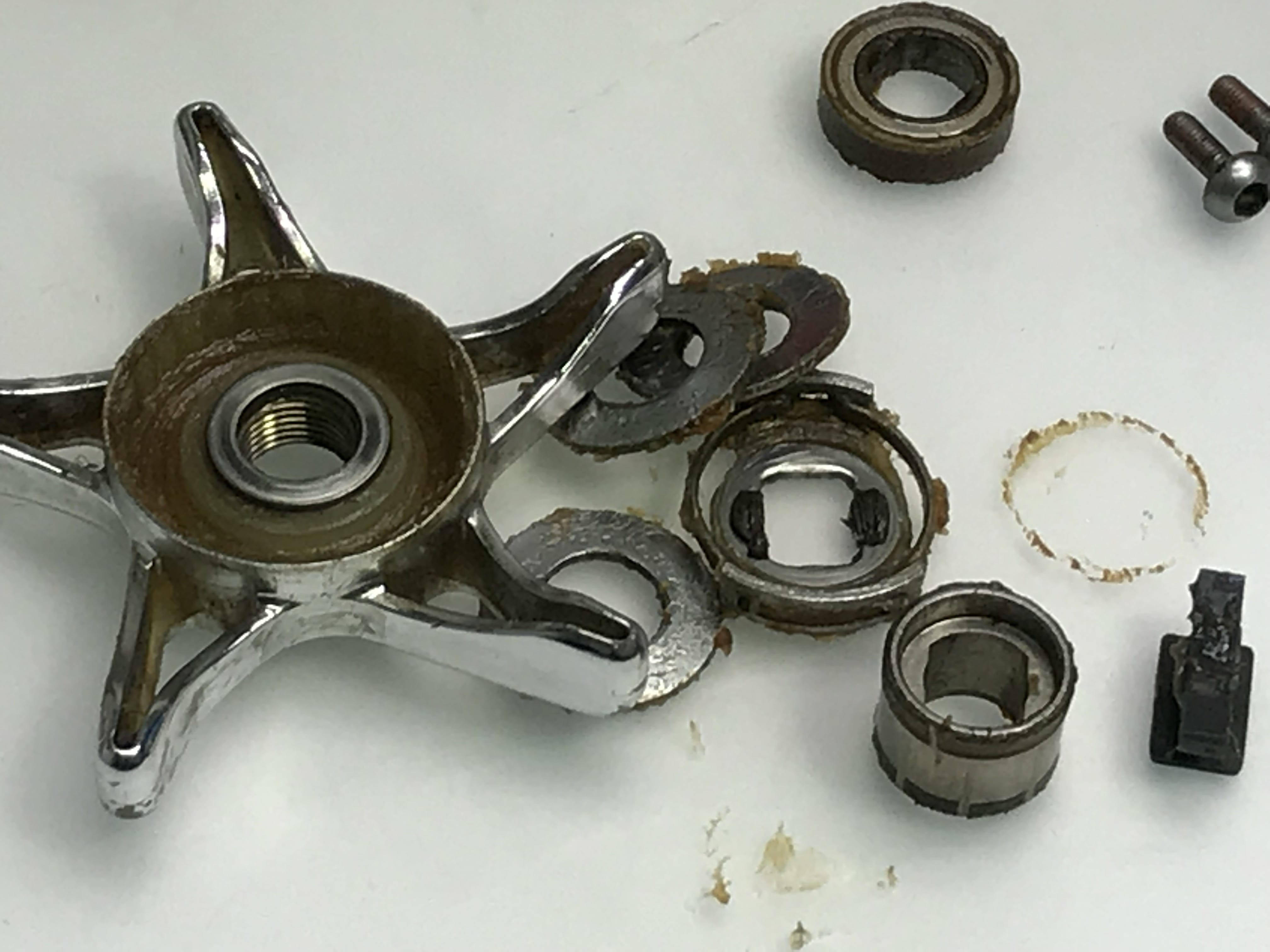 아래의 사진은 베어링은 전부 망가져서 베어링내부의 볼들이 돌아 다닙니다.