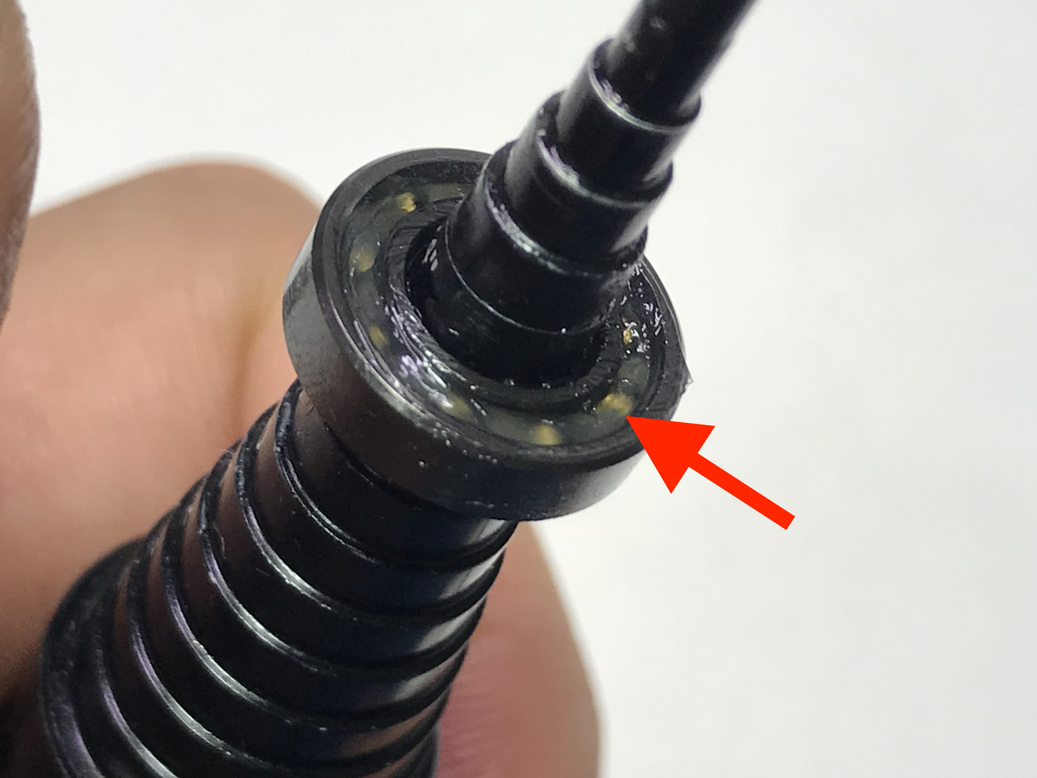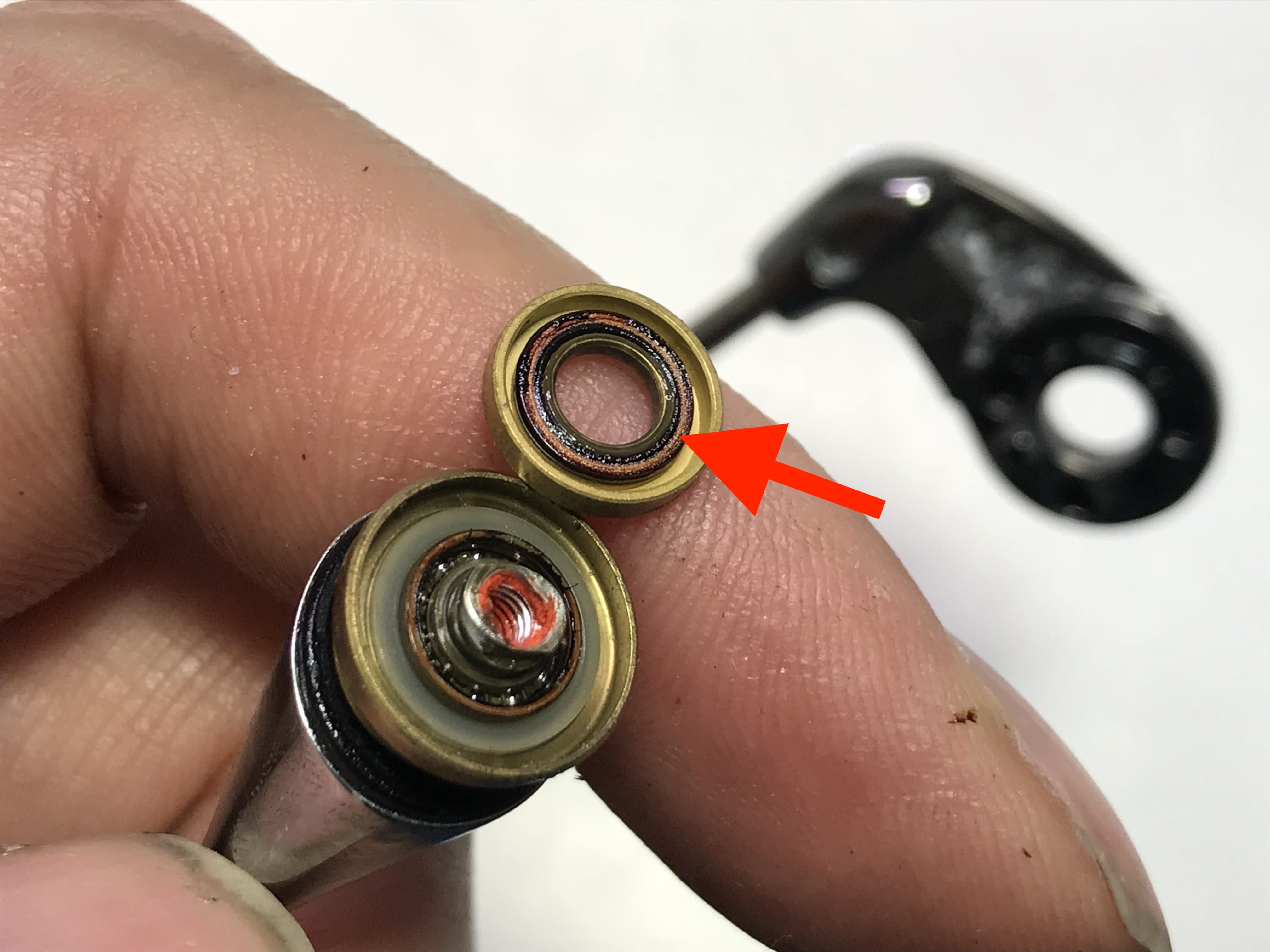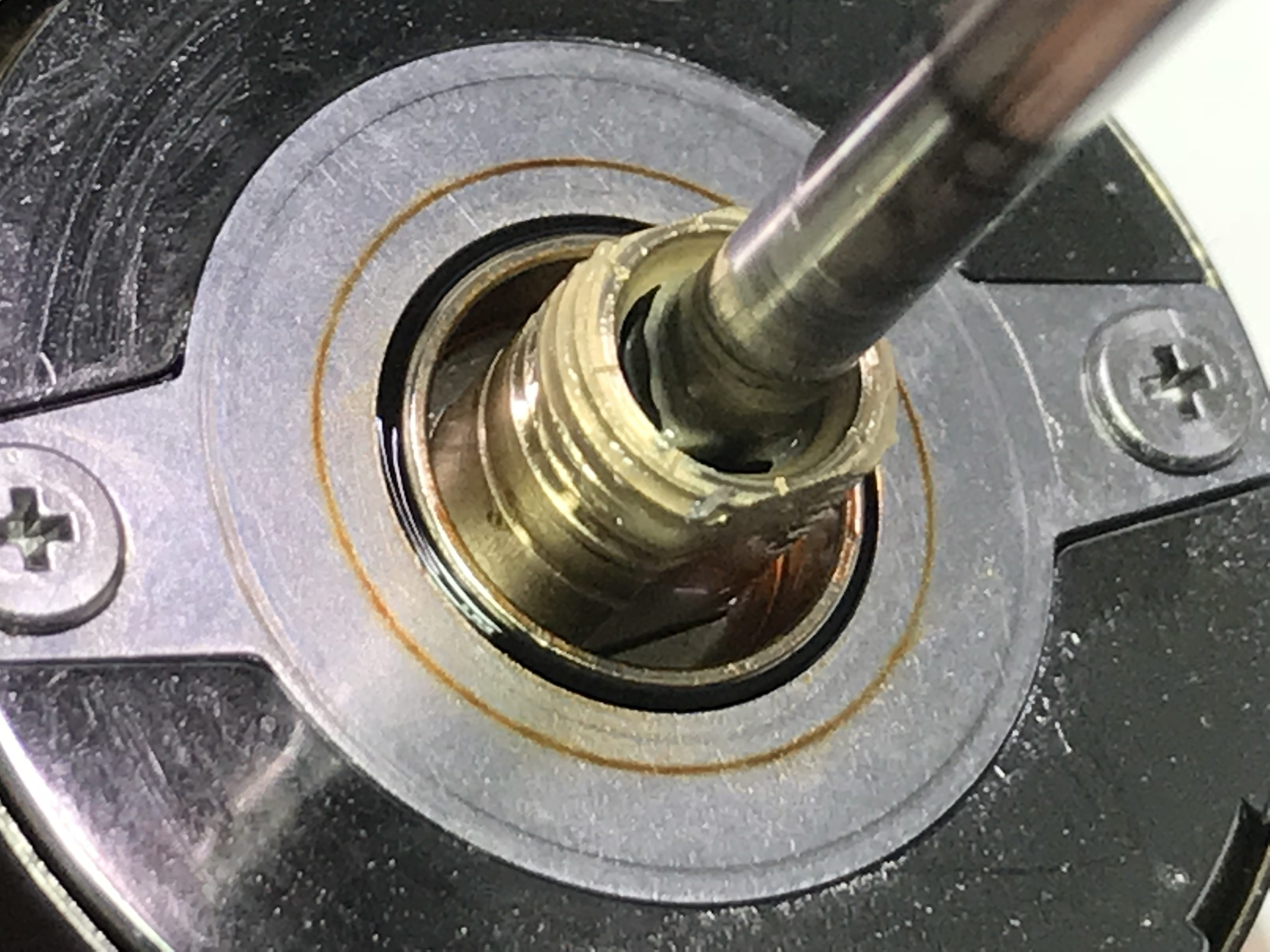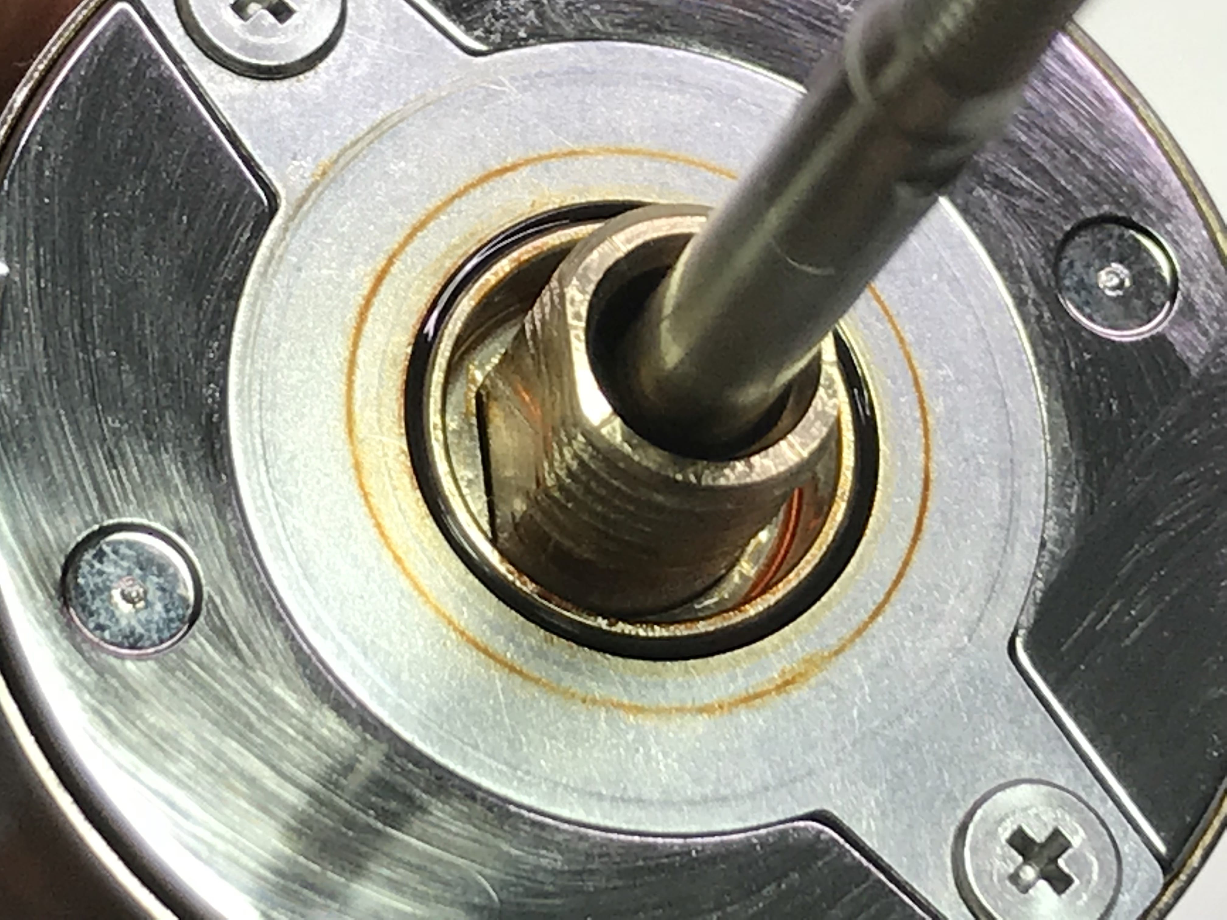 스풀 위쪽 분리후에 내부의 맥오일은 적정량 있습니다.