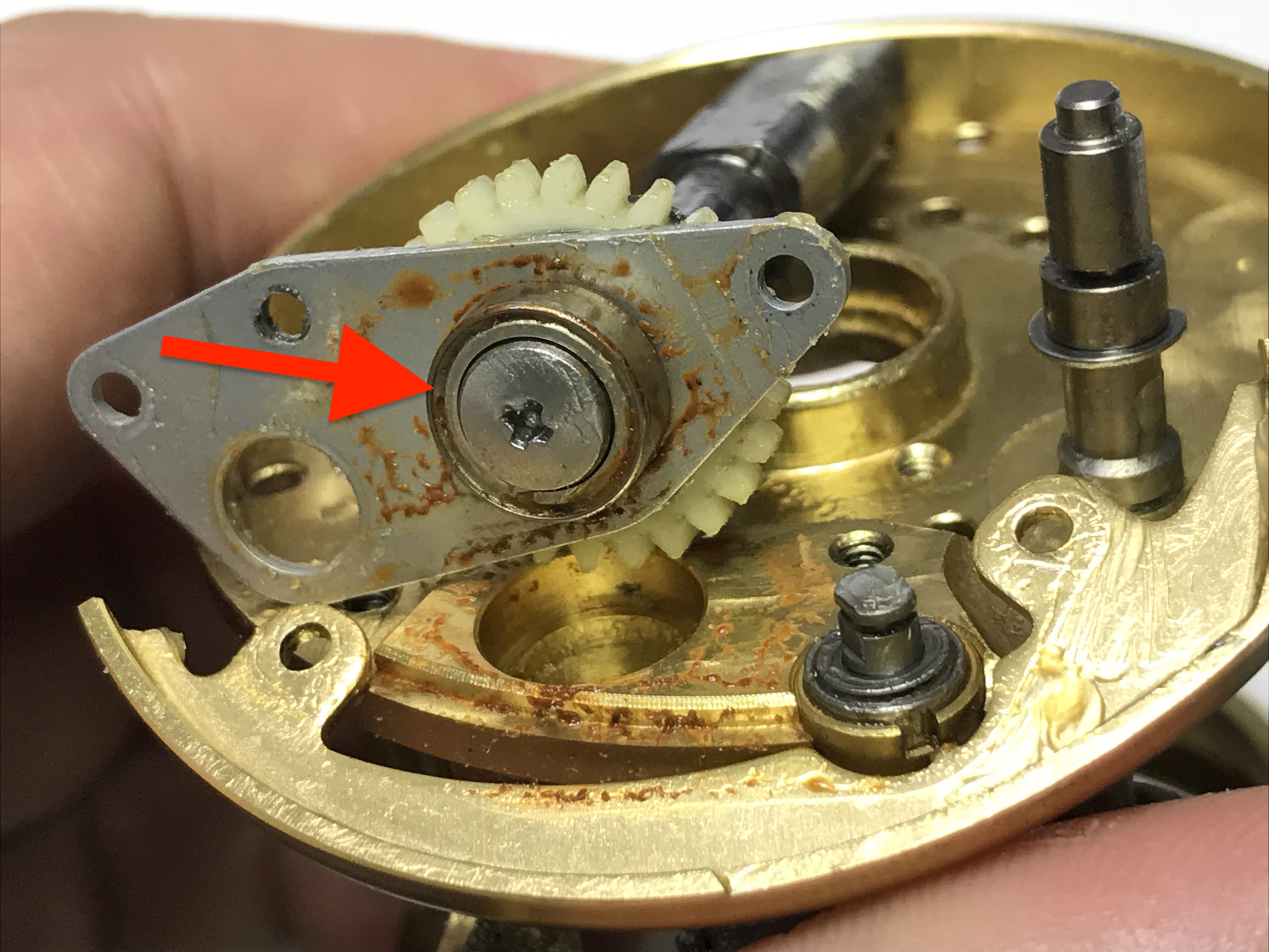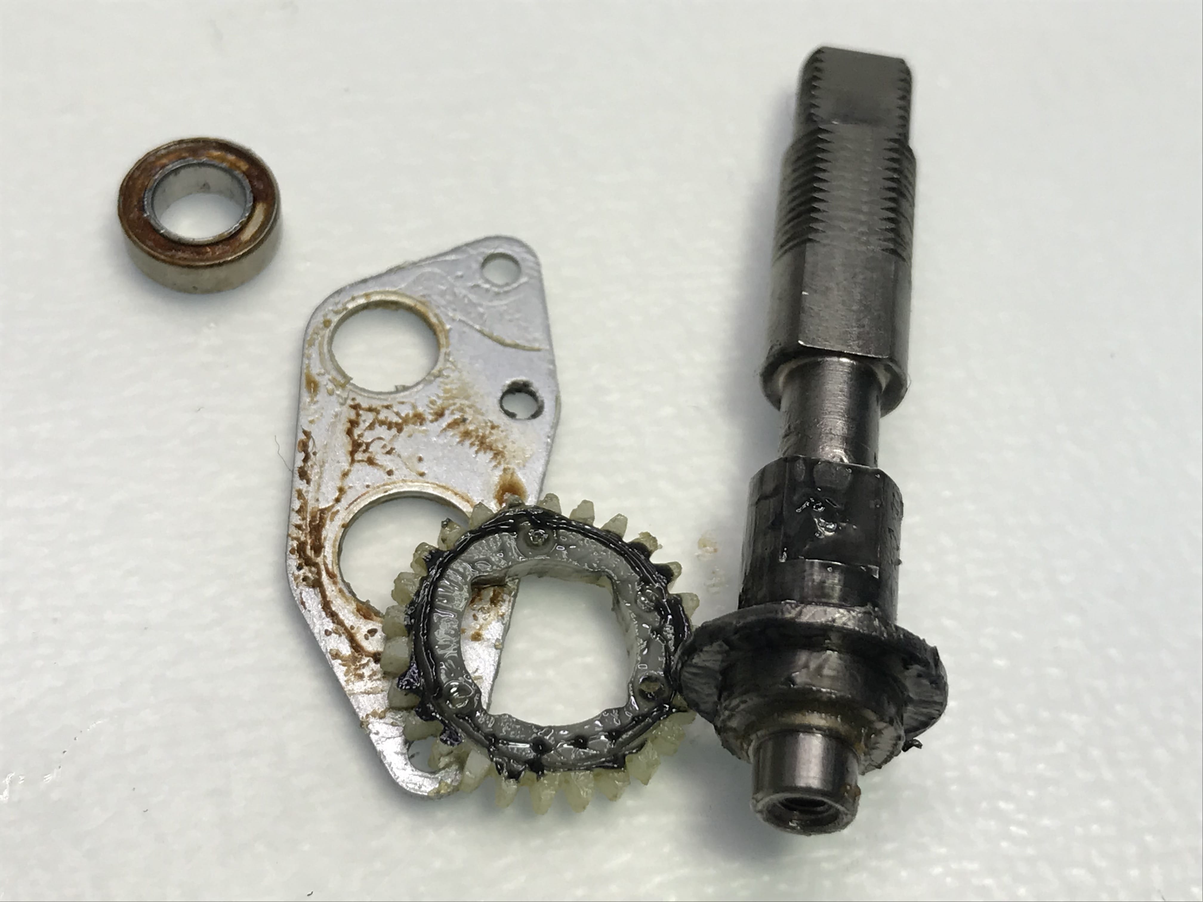 드라이브기어 샤프트축 아래 베어링 녹과 고착 보입니다.