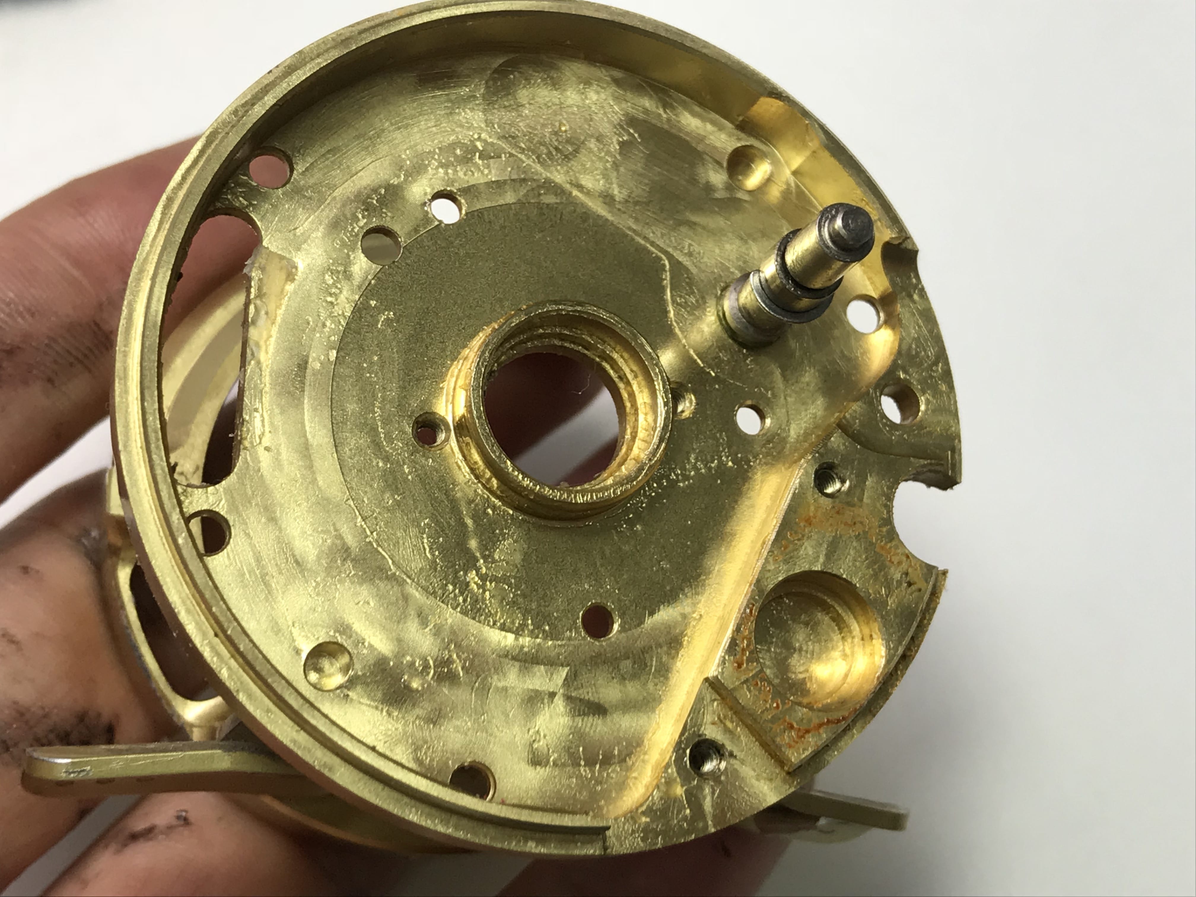 웜기어쪽 구리스와 오염물질들로 릴링에 방해가 보입니다.
