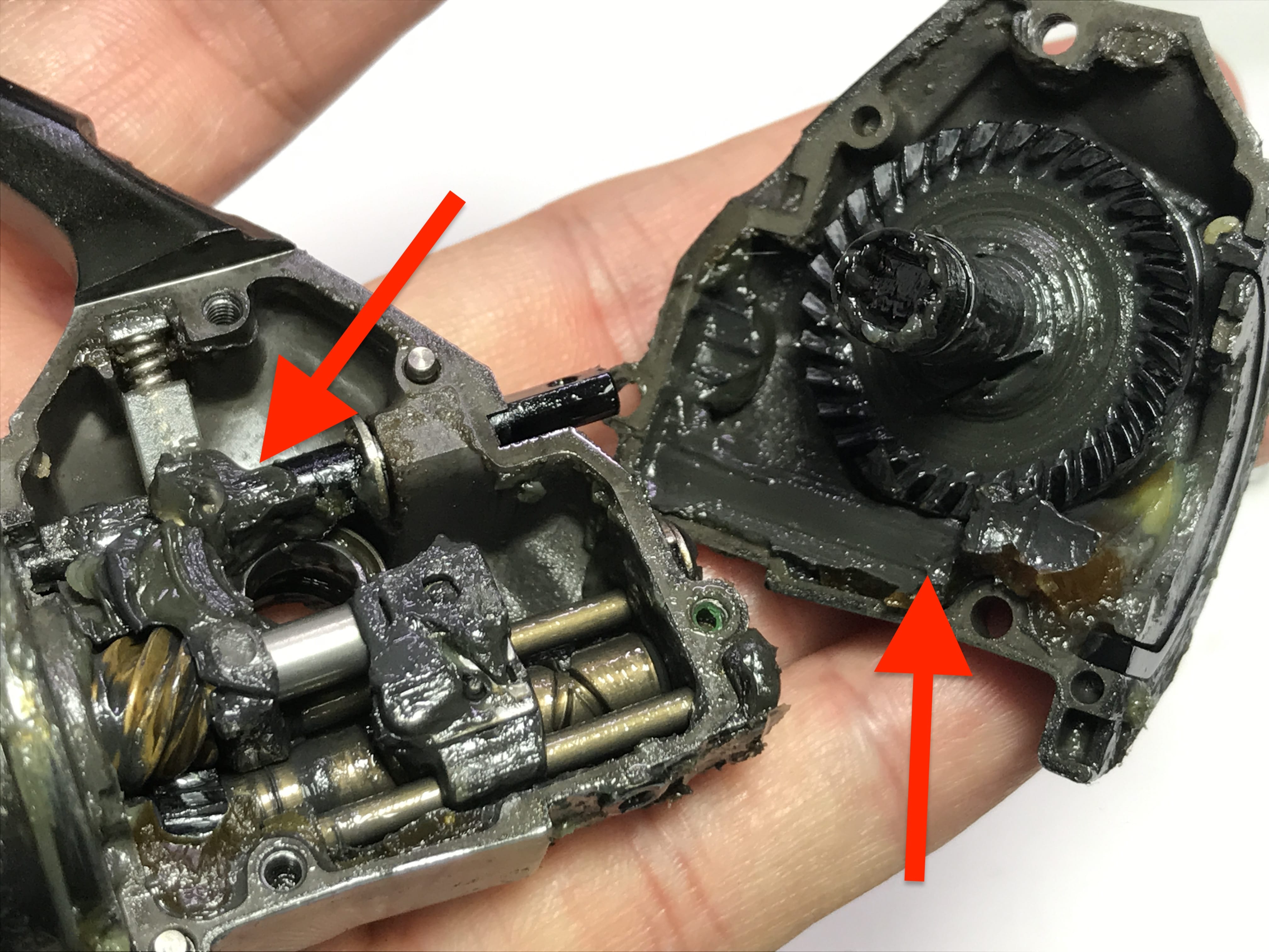 드라이브 기어와 피니언분해 하면서 살짝 보니 마모도 보입니다.