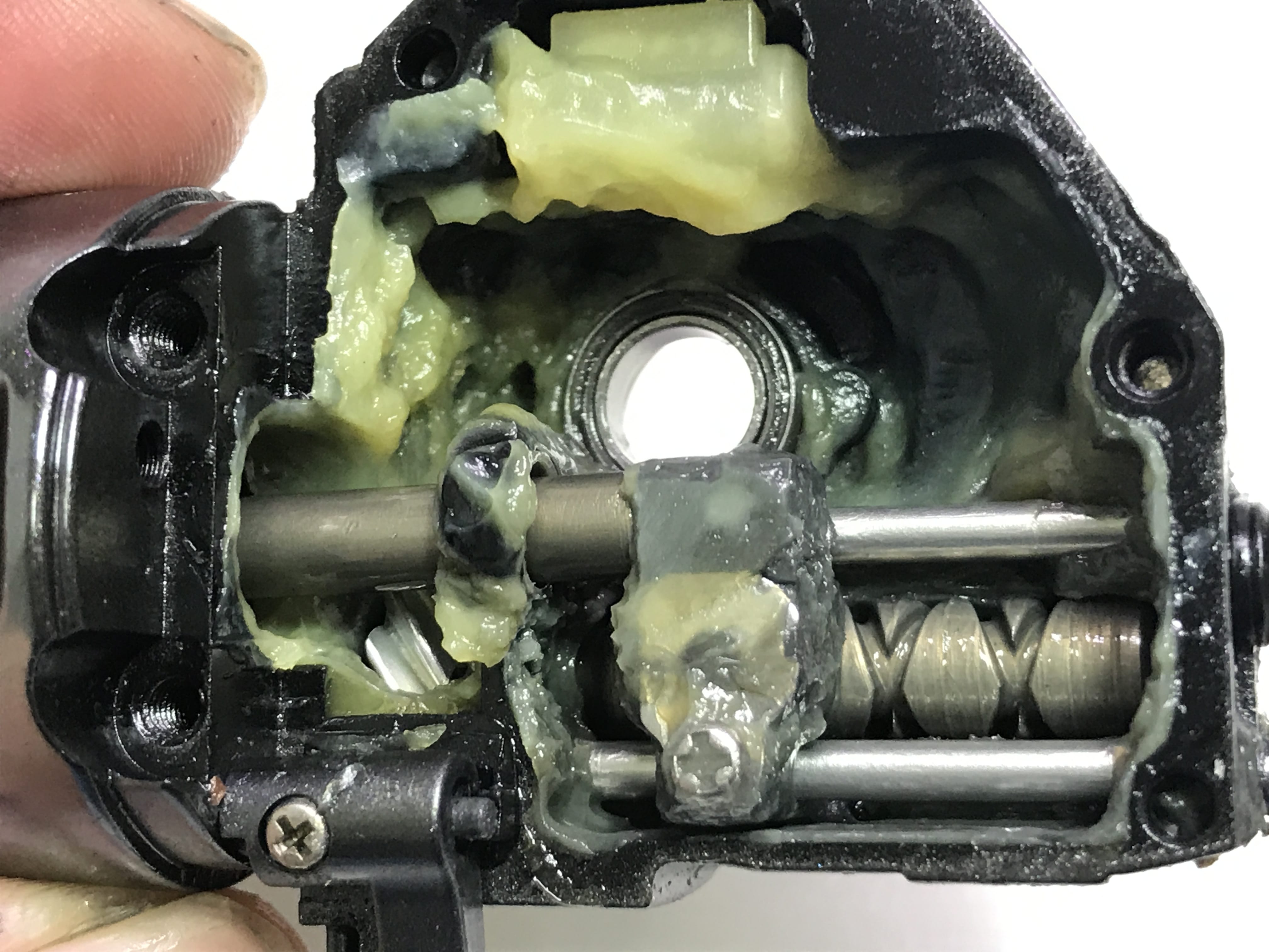 아래의 사진들 처럼 적소에 오일+구리스 충전해야 릴링감도 좋고 추후에 릴정비하기 좋습니다 .
