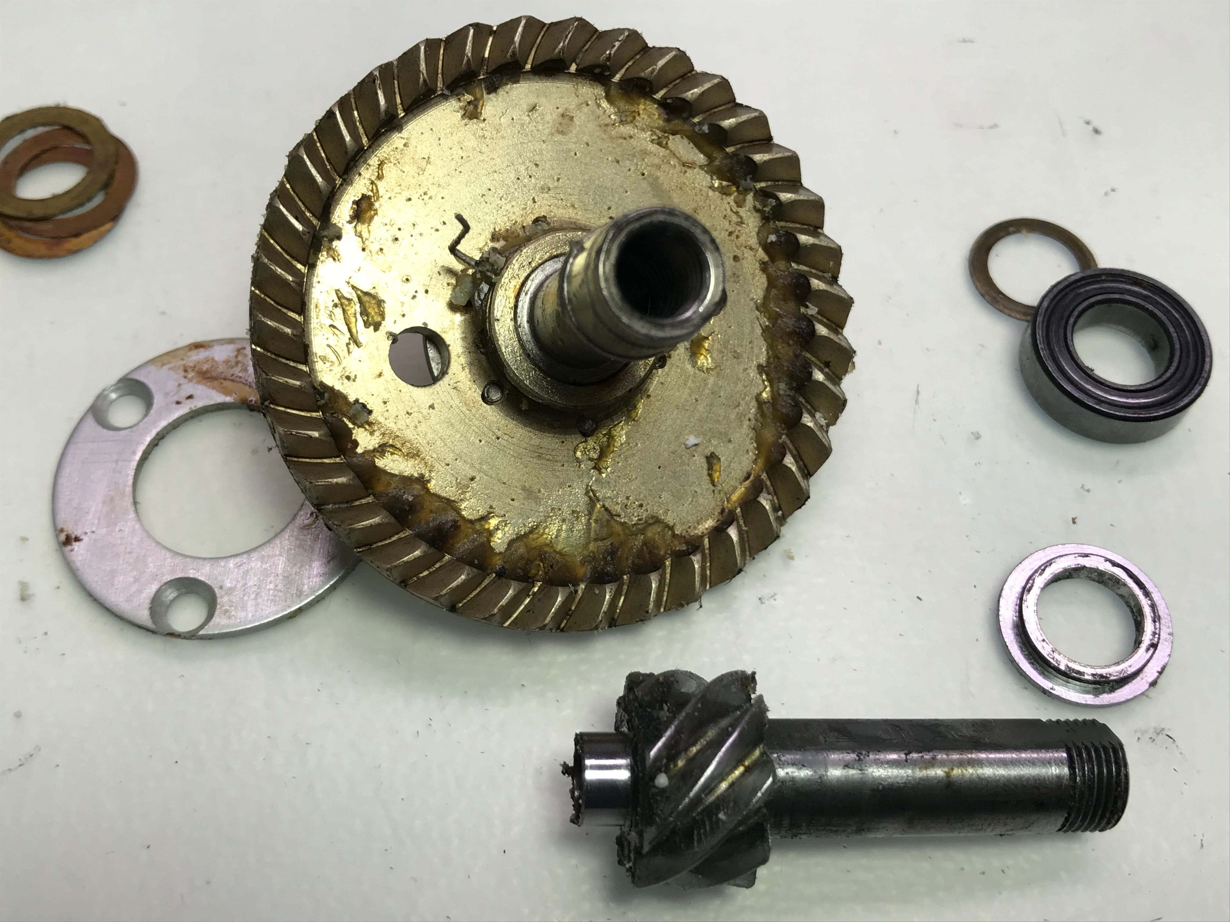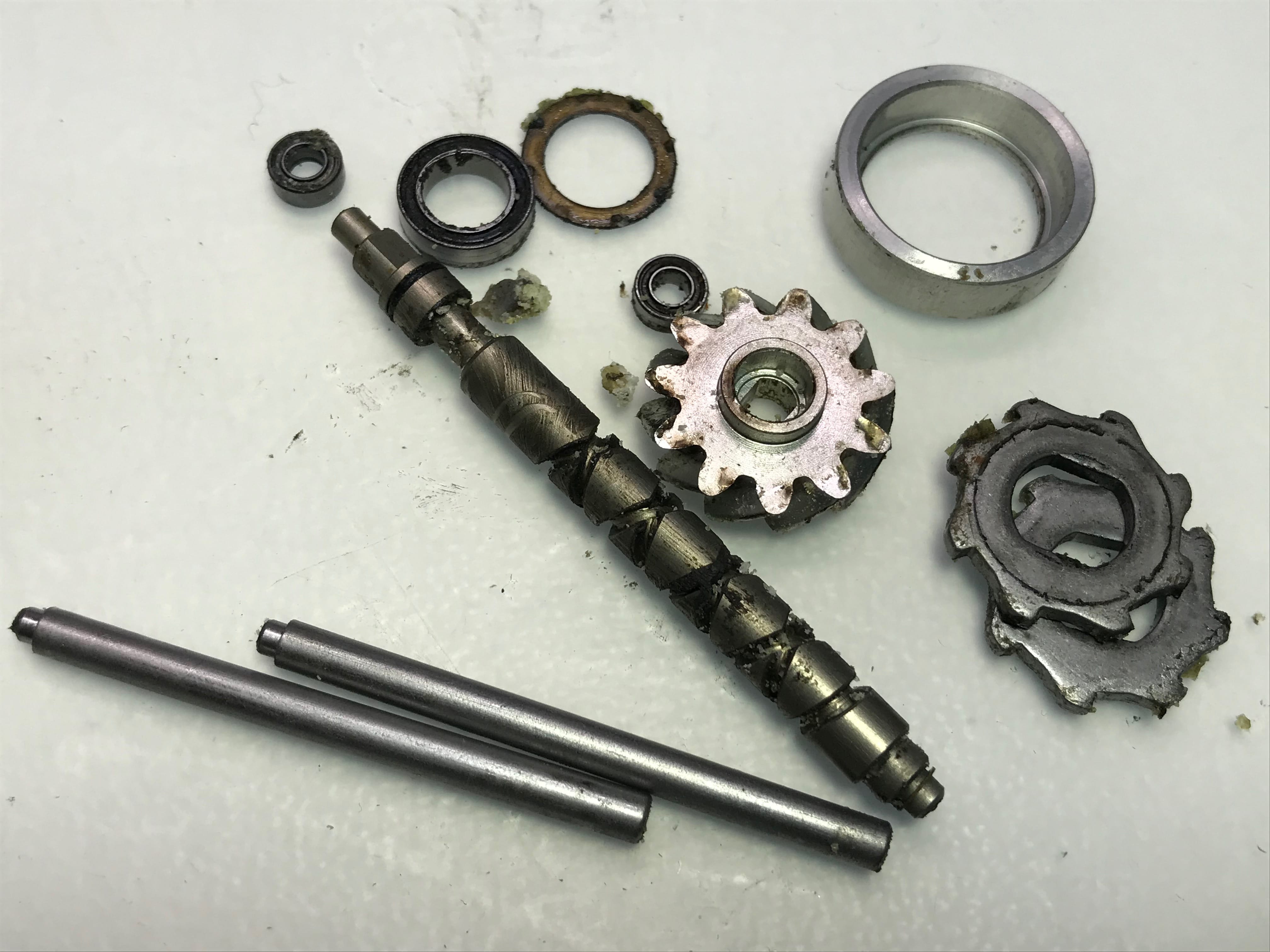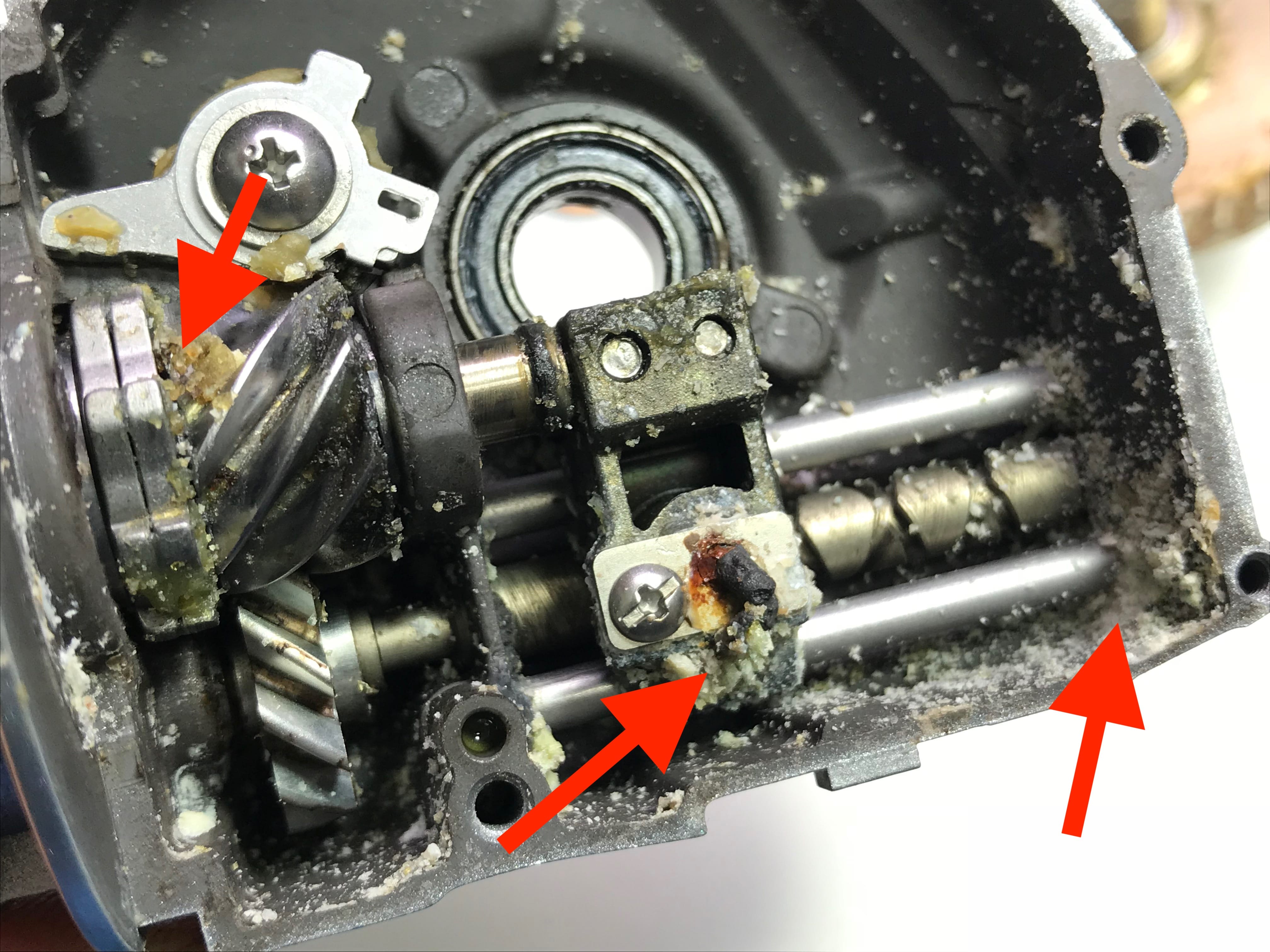 마스터기어를 꺼내니 구동부 구석구석 고착된 부분이들이 보입니다.
