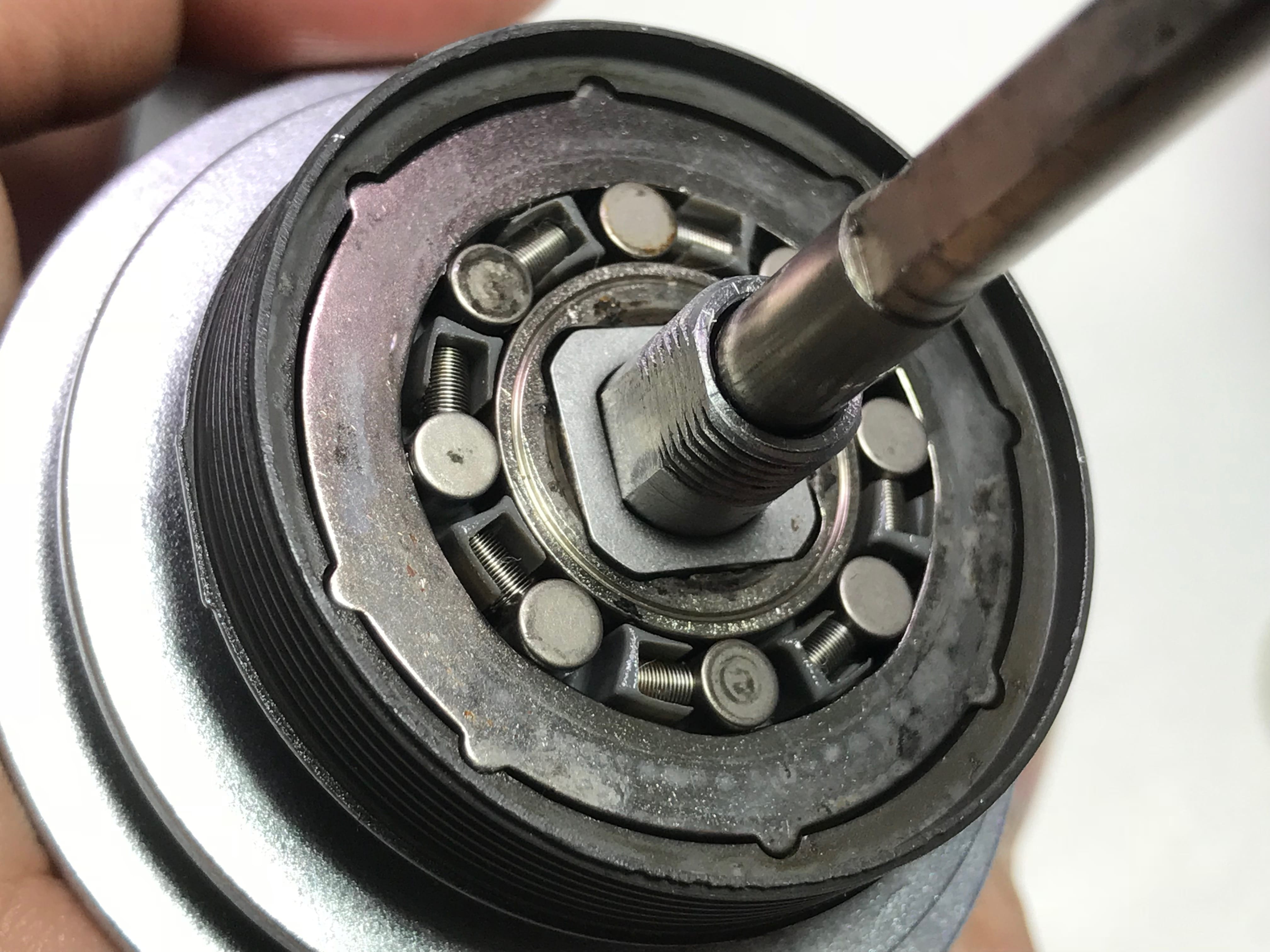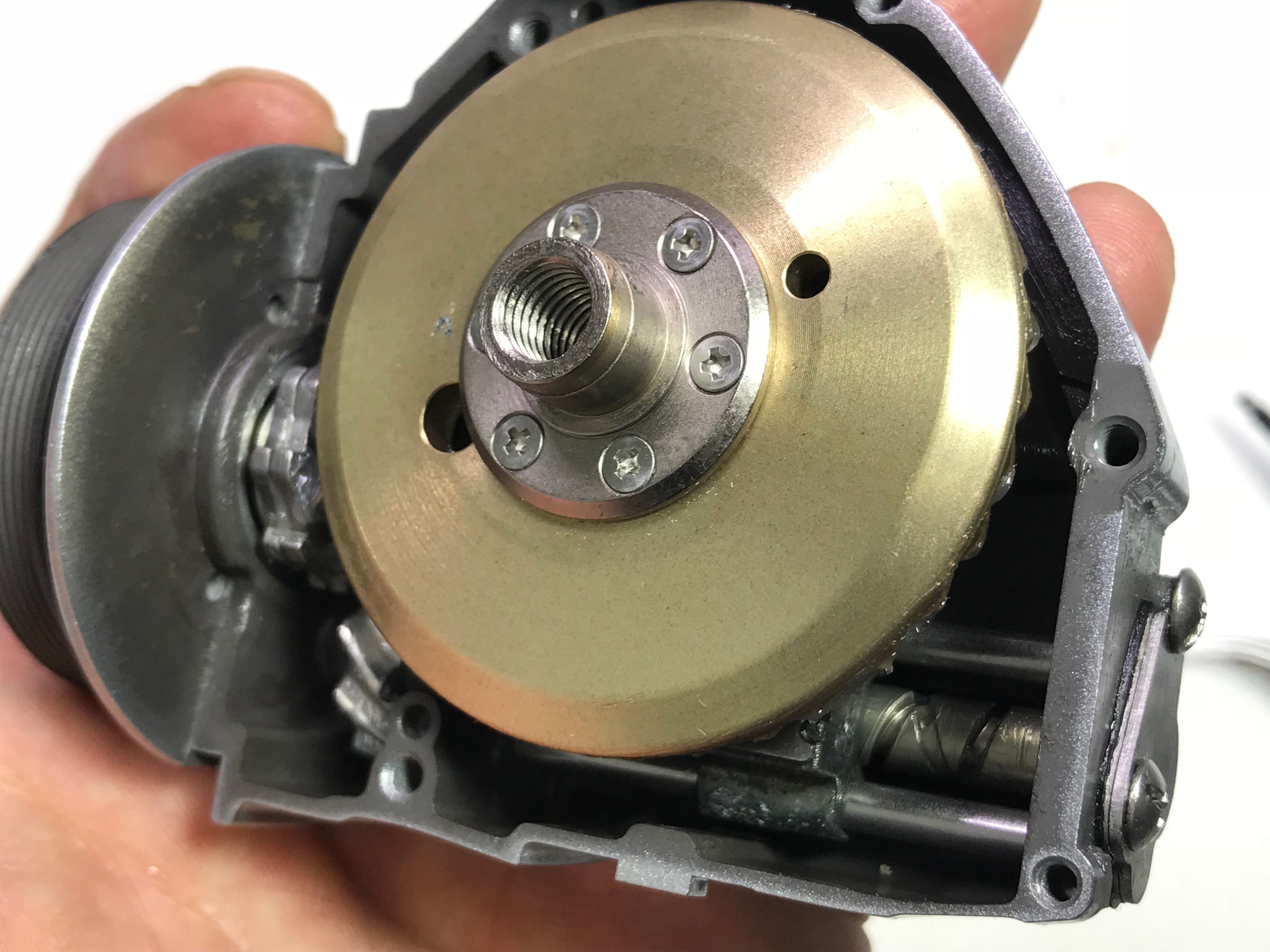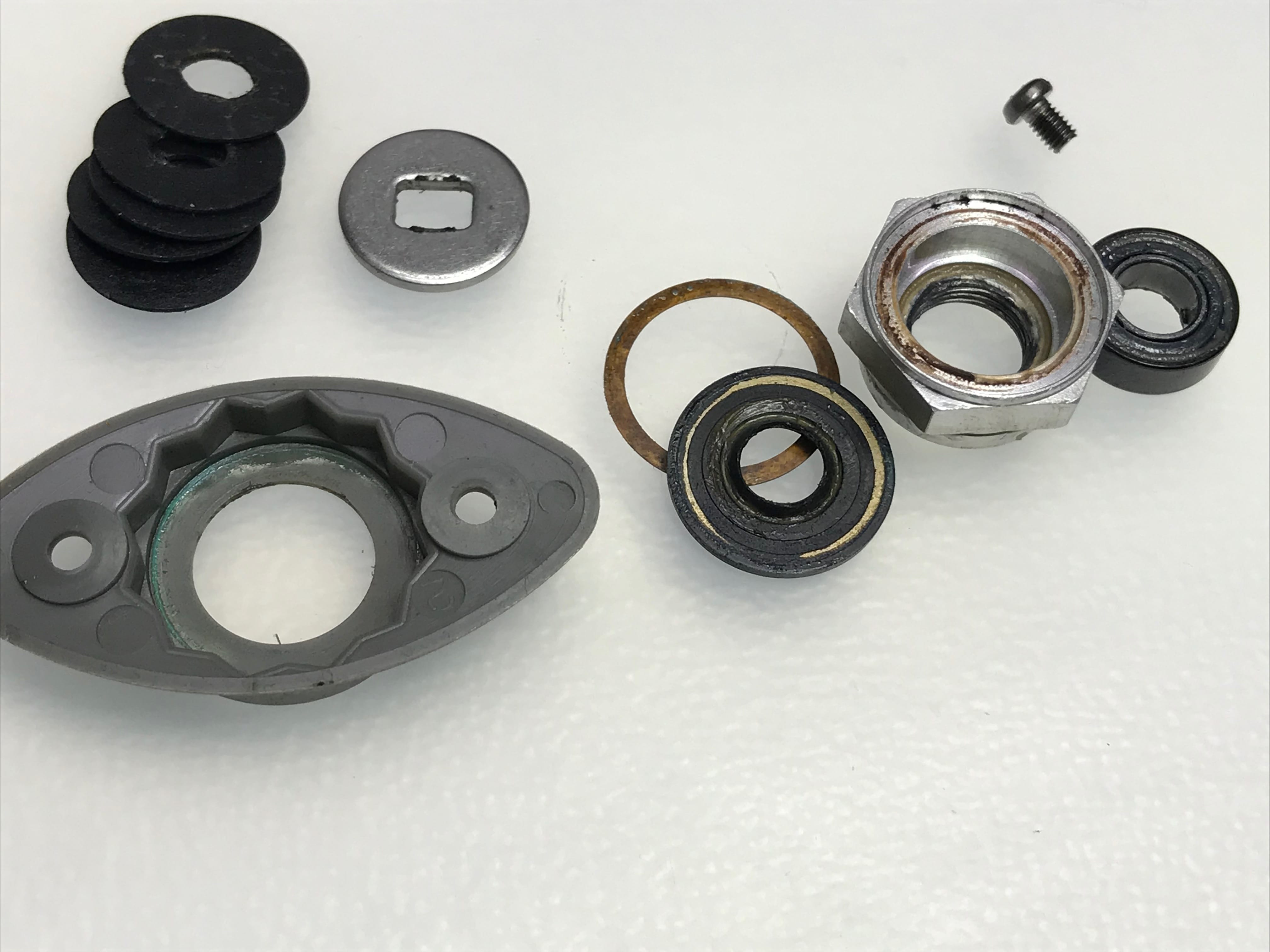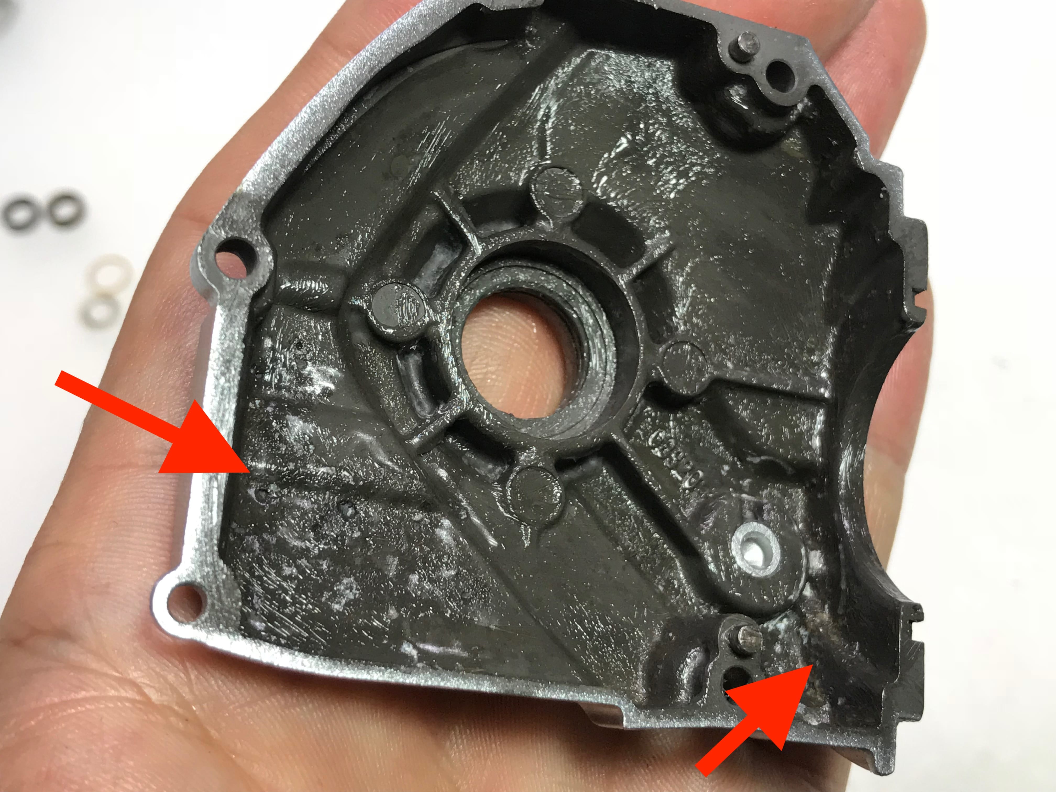 마스터기어를 꺼내니 구동부 구석구석 고착된 부분이들이 보입니다.