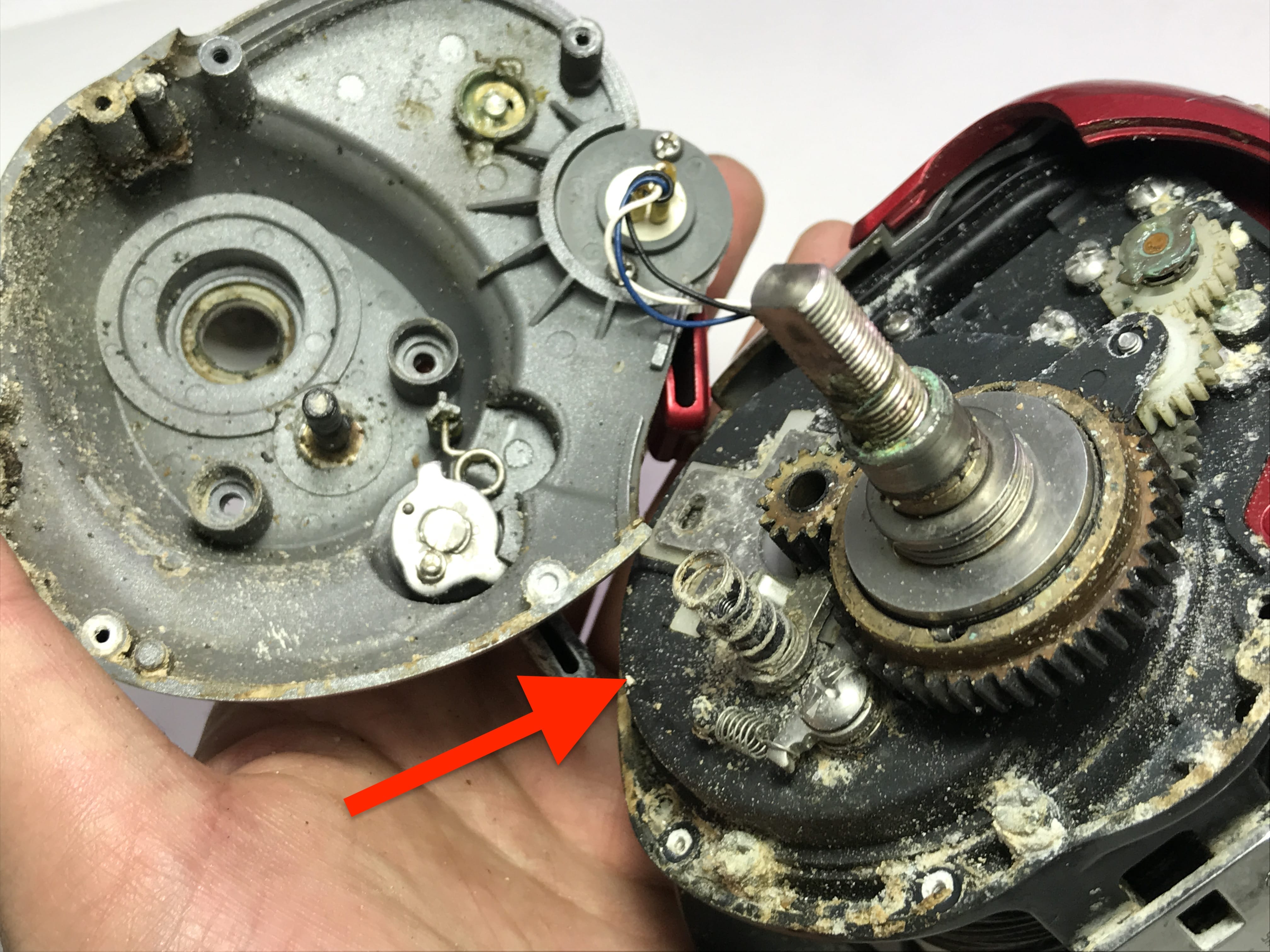 스풀내부의 구리스들도 만져보면 딱딱합니다.