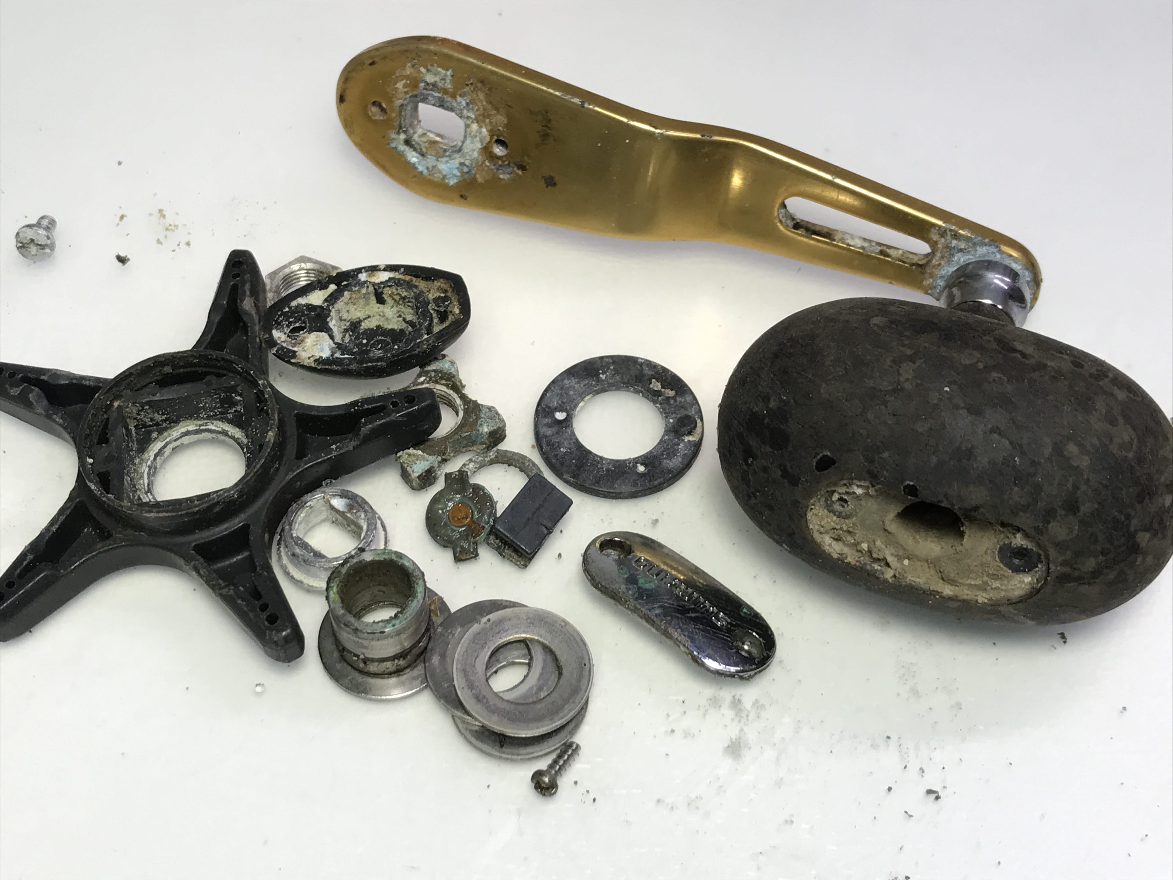바닷물 많이 닫는 부분아래쪽 나사 분해중 부러져서 나옵니다.