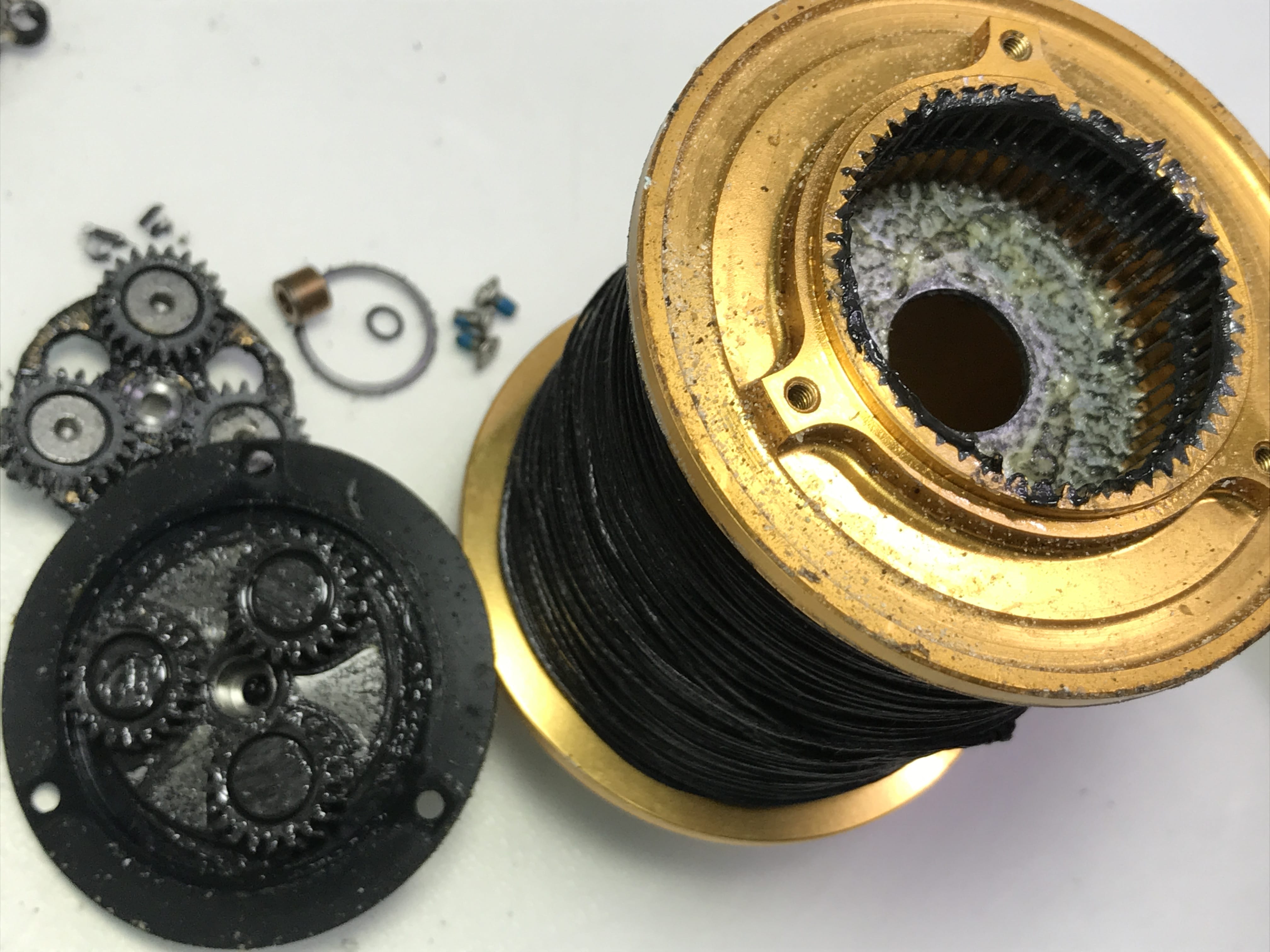 스풀과 감속기어들 상태는 양호합니다.