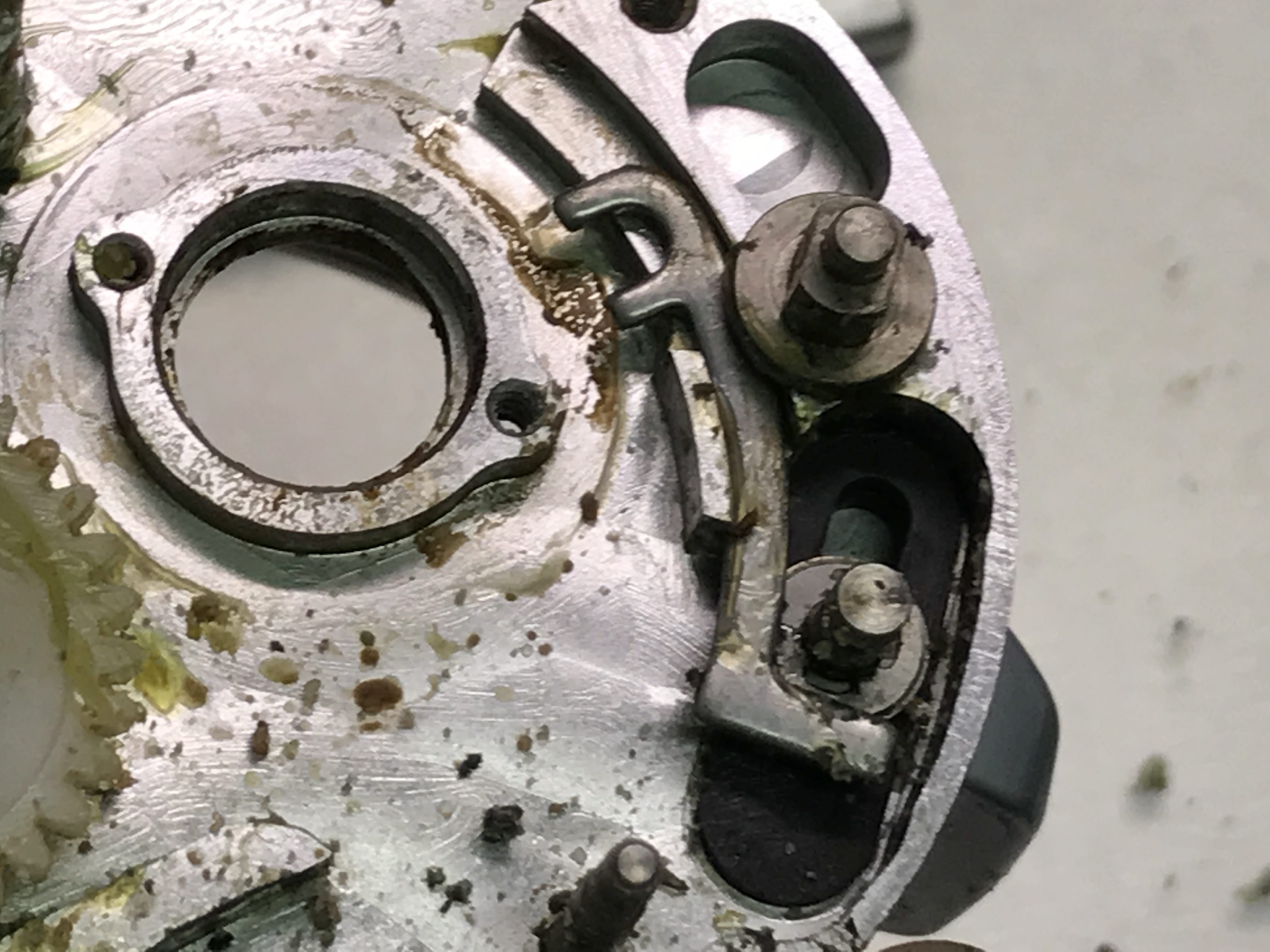 소금과 구리스 오염물질들이 싸여서 아에 고착을 지나 시멘트처럼 됐습니다.