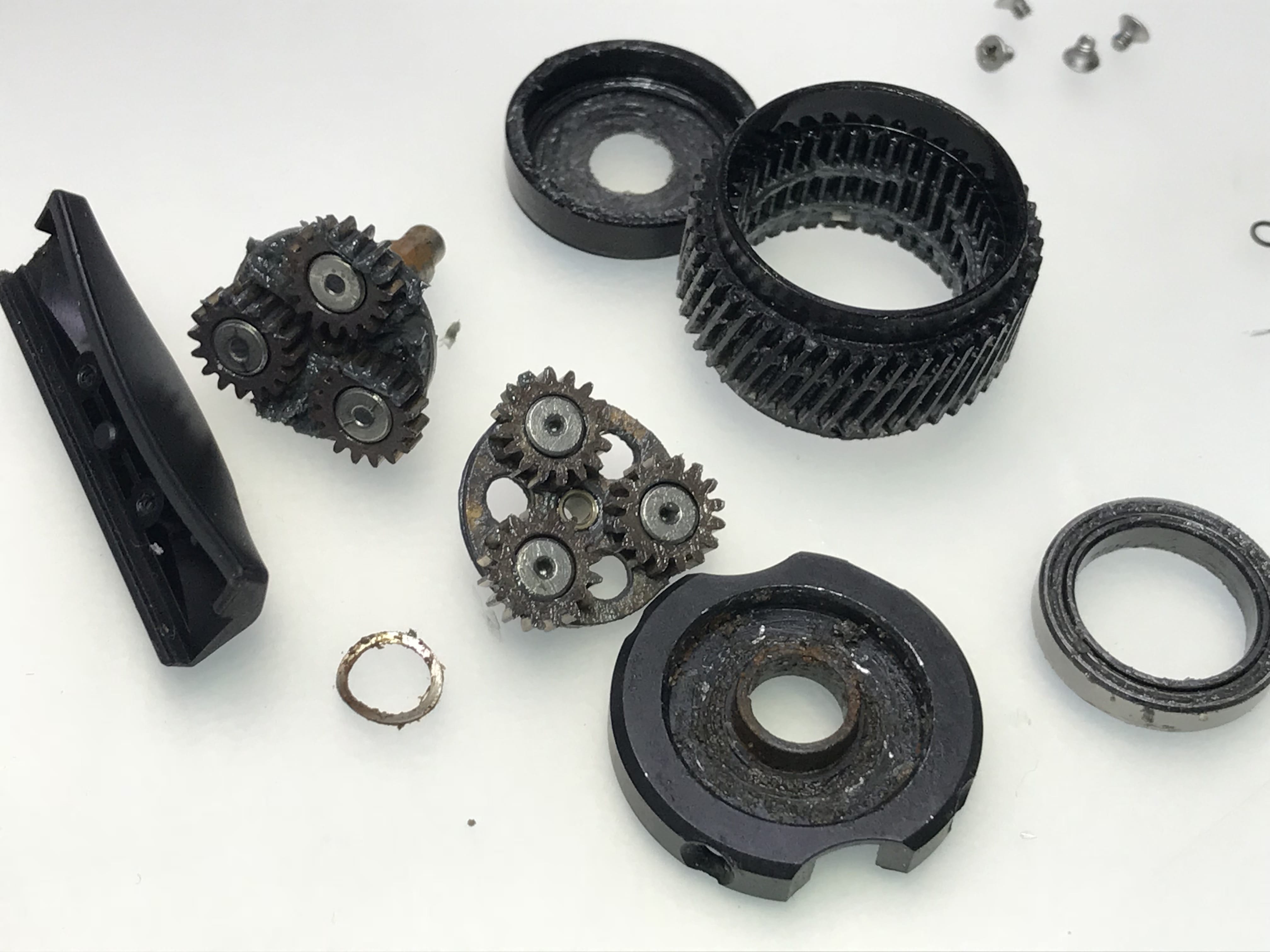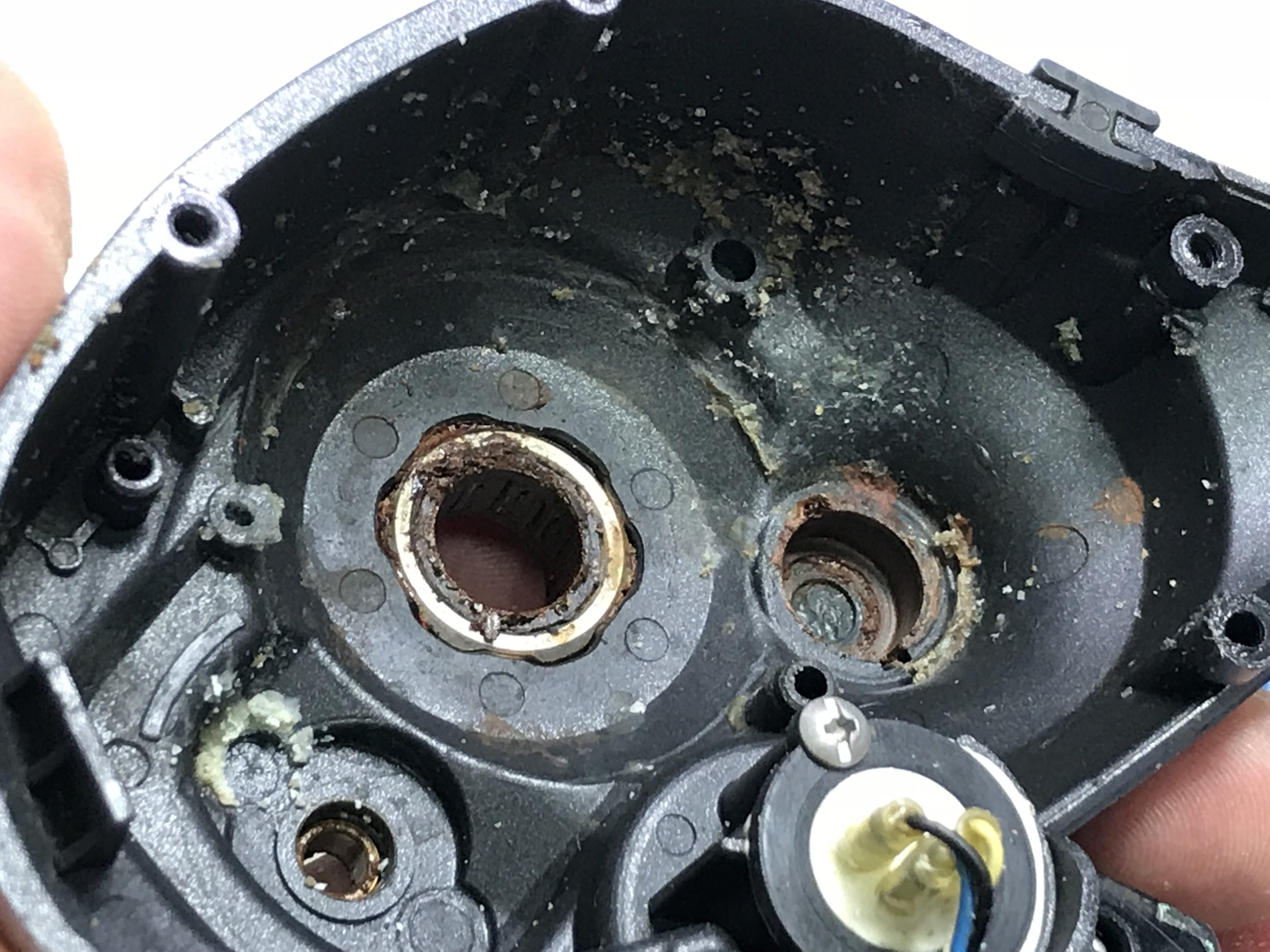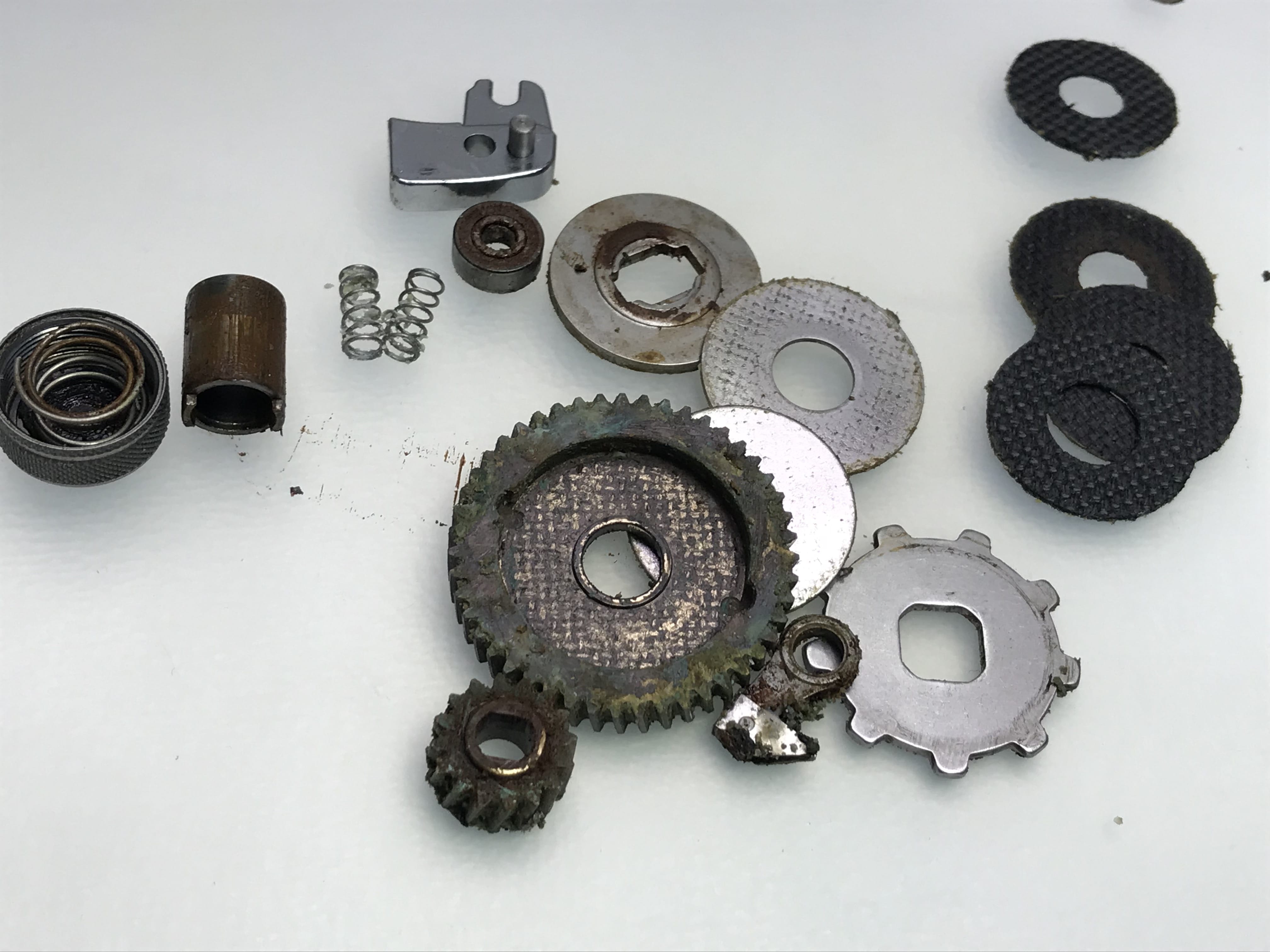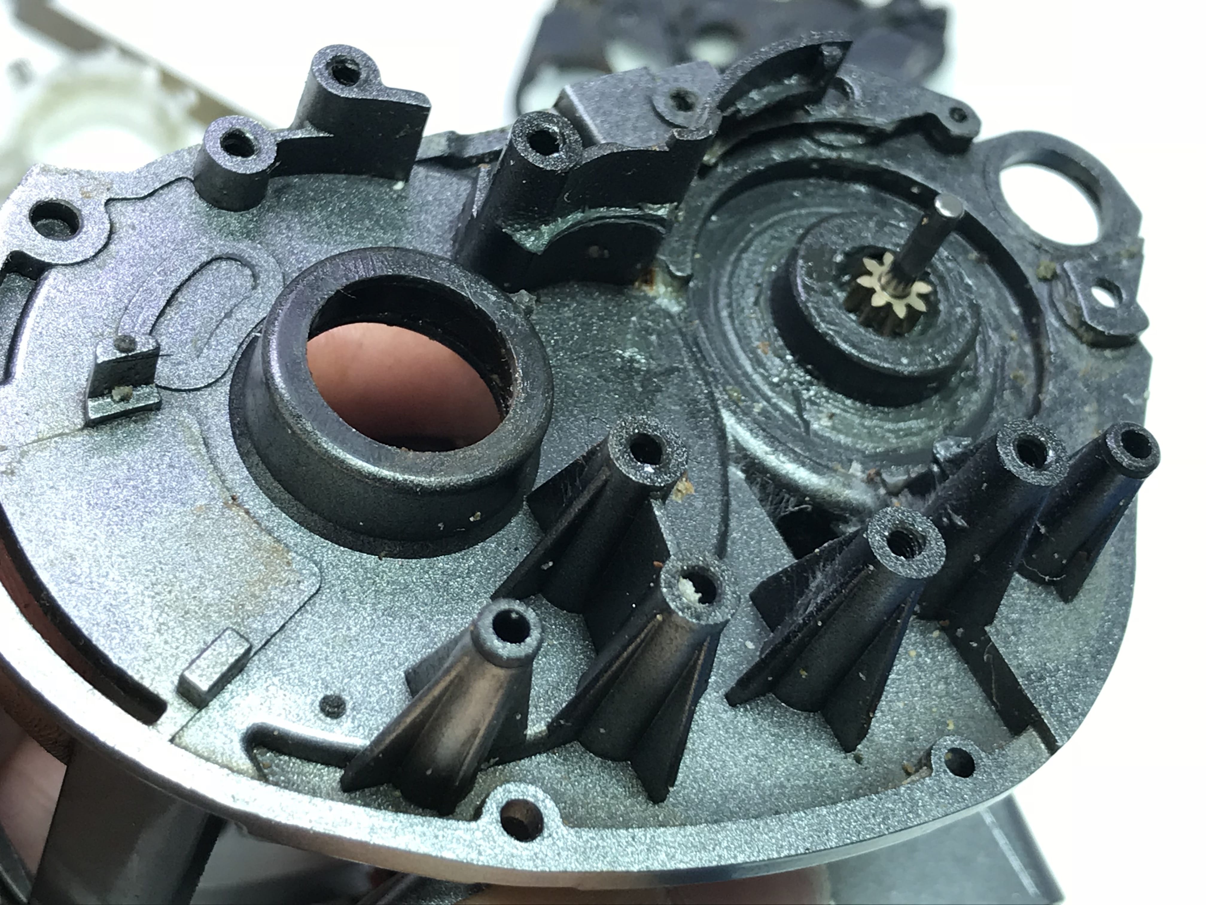 내부기어의 부품들 산화 및 녹과 고착으로 형태가 잘 보이지 않습니다.