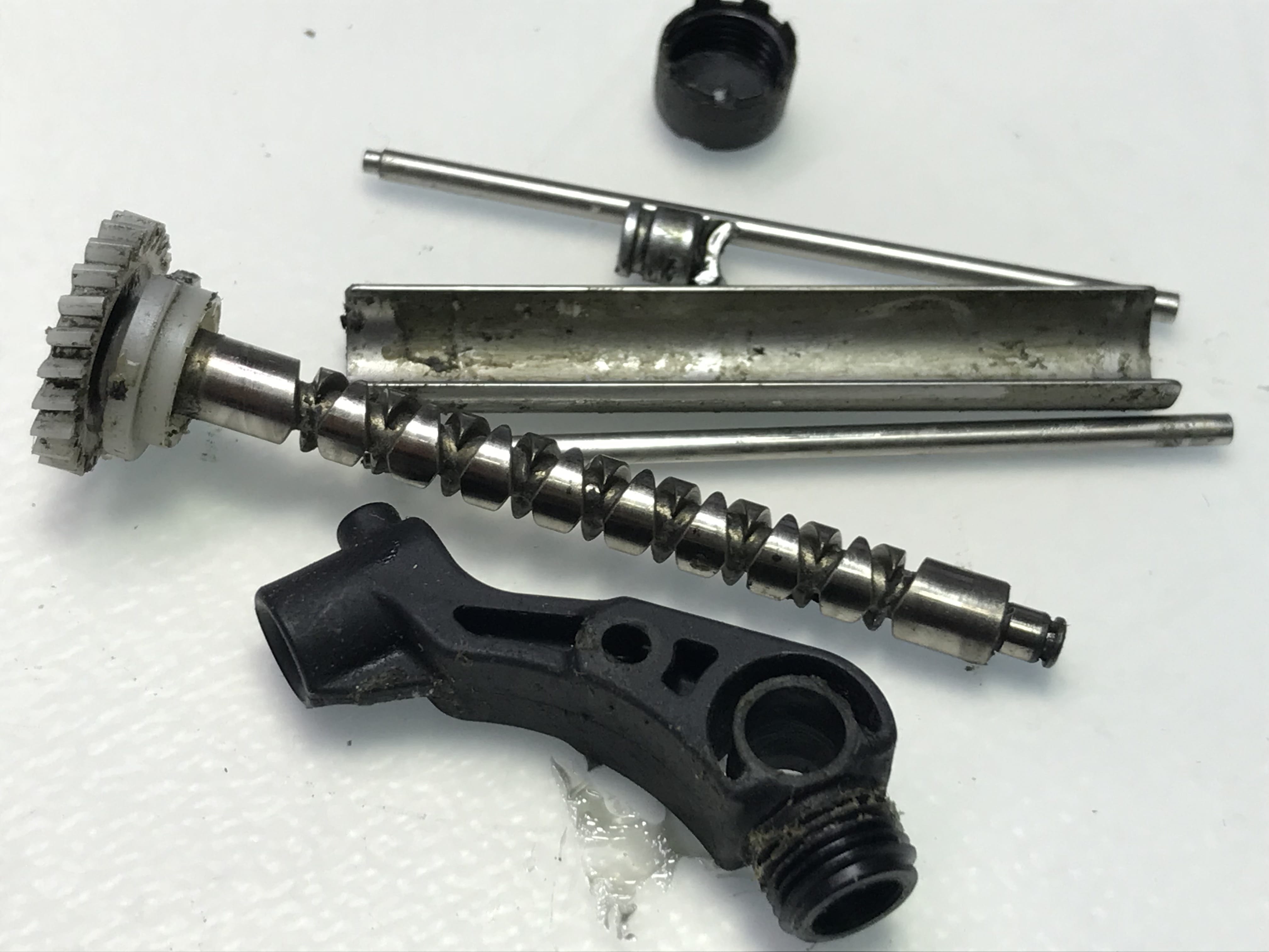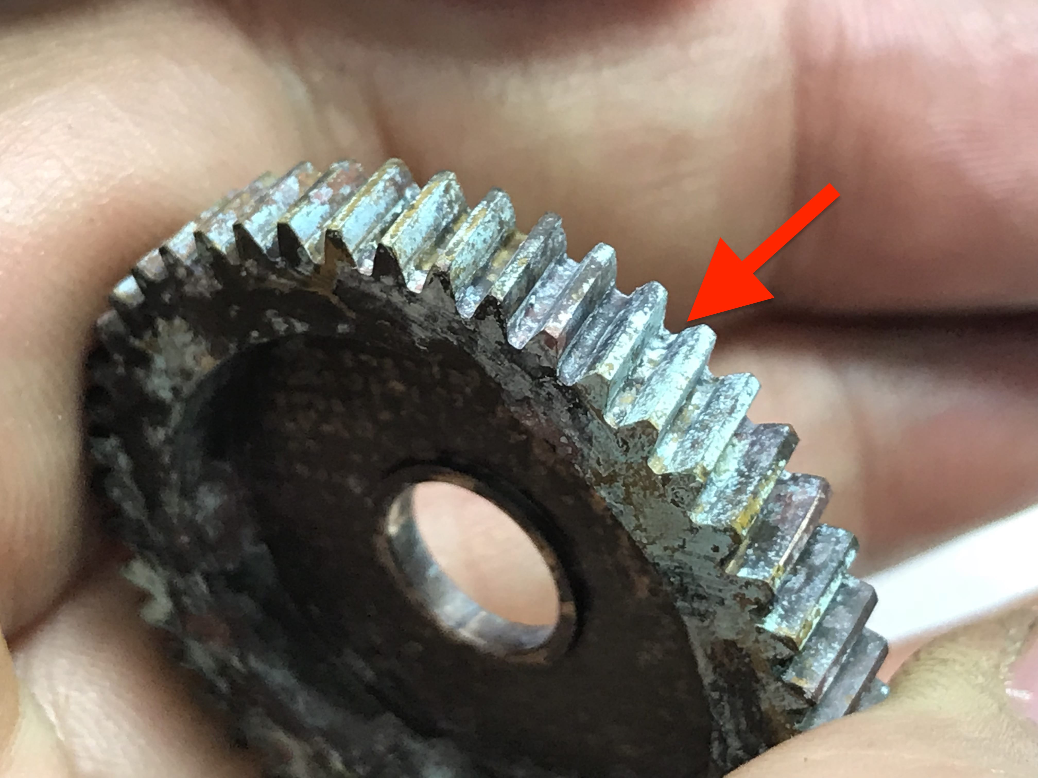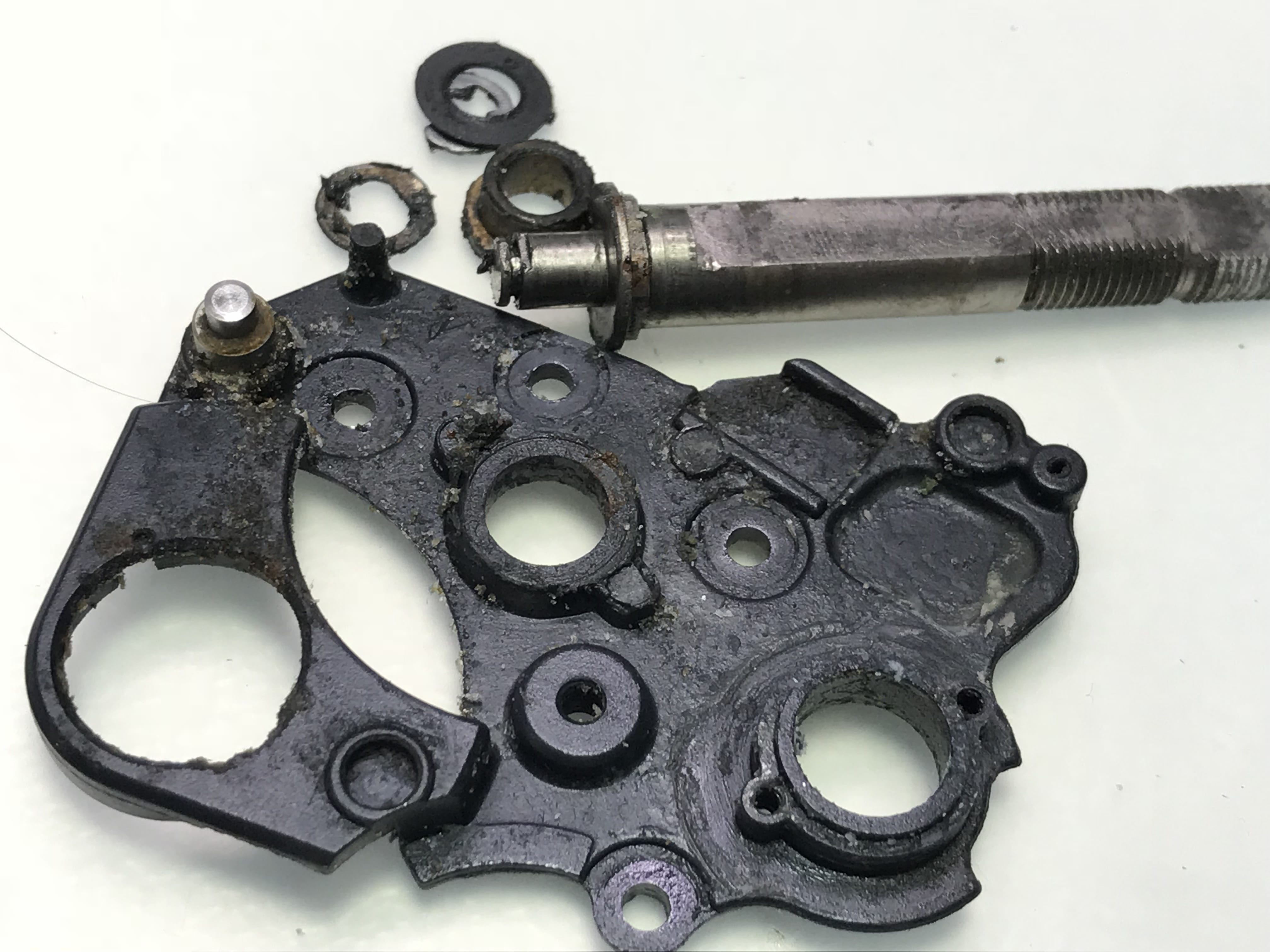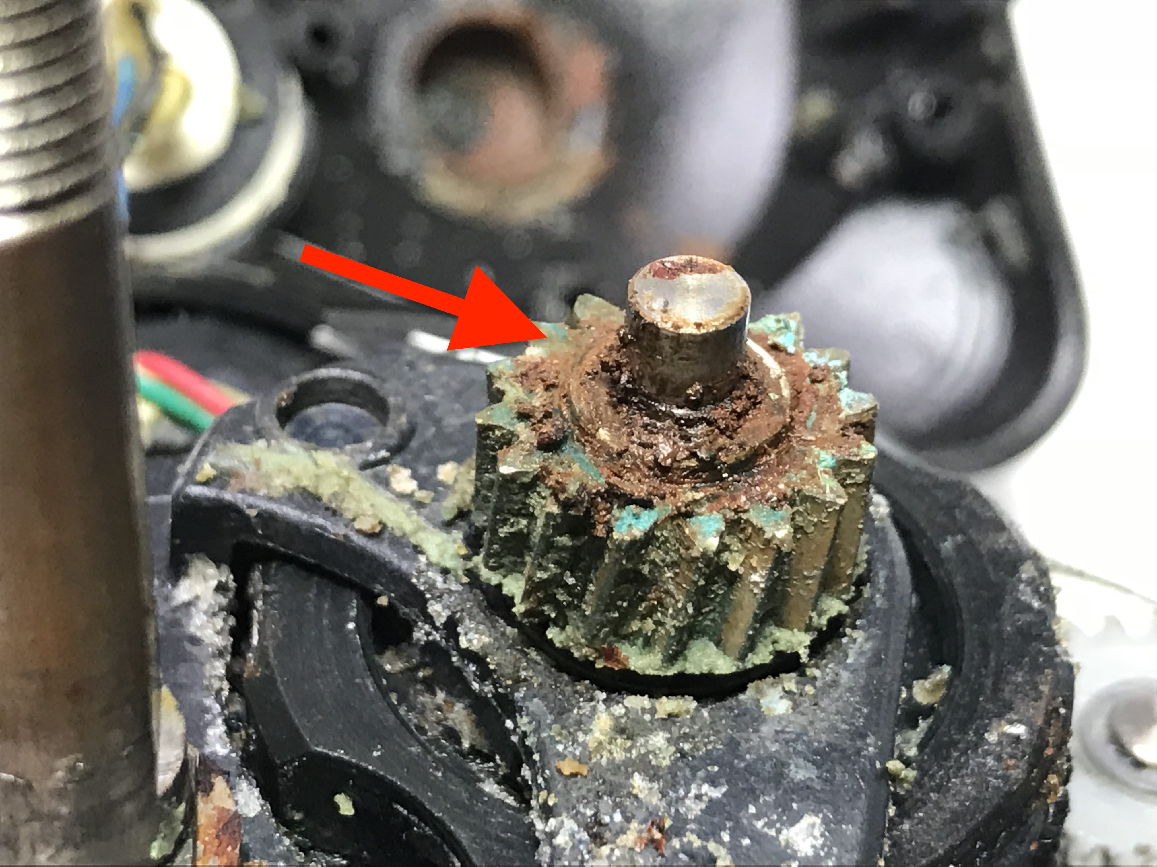 내부기어의 부품들 산화 및 녹과 고착으로 형태가 잘 보이지 않습니다.