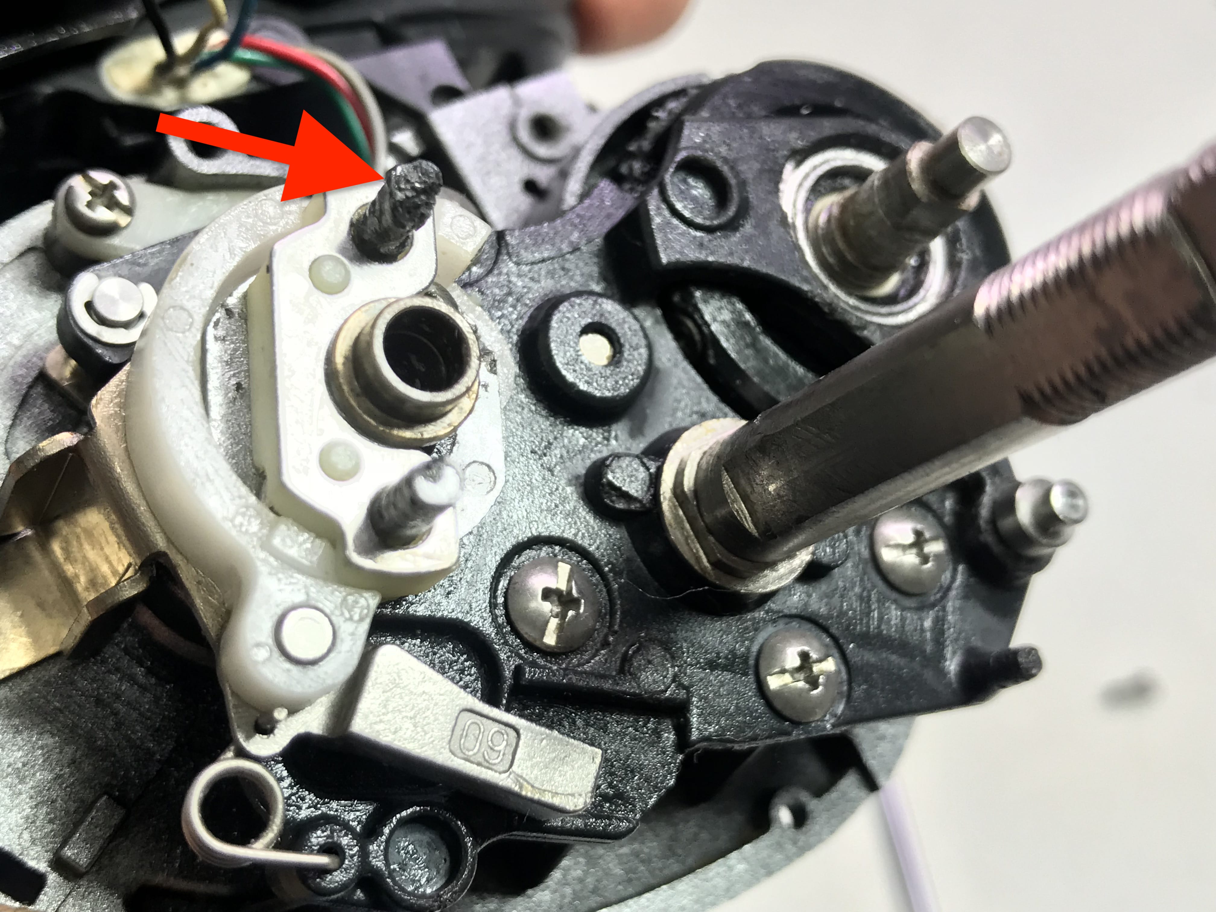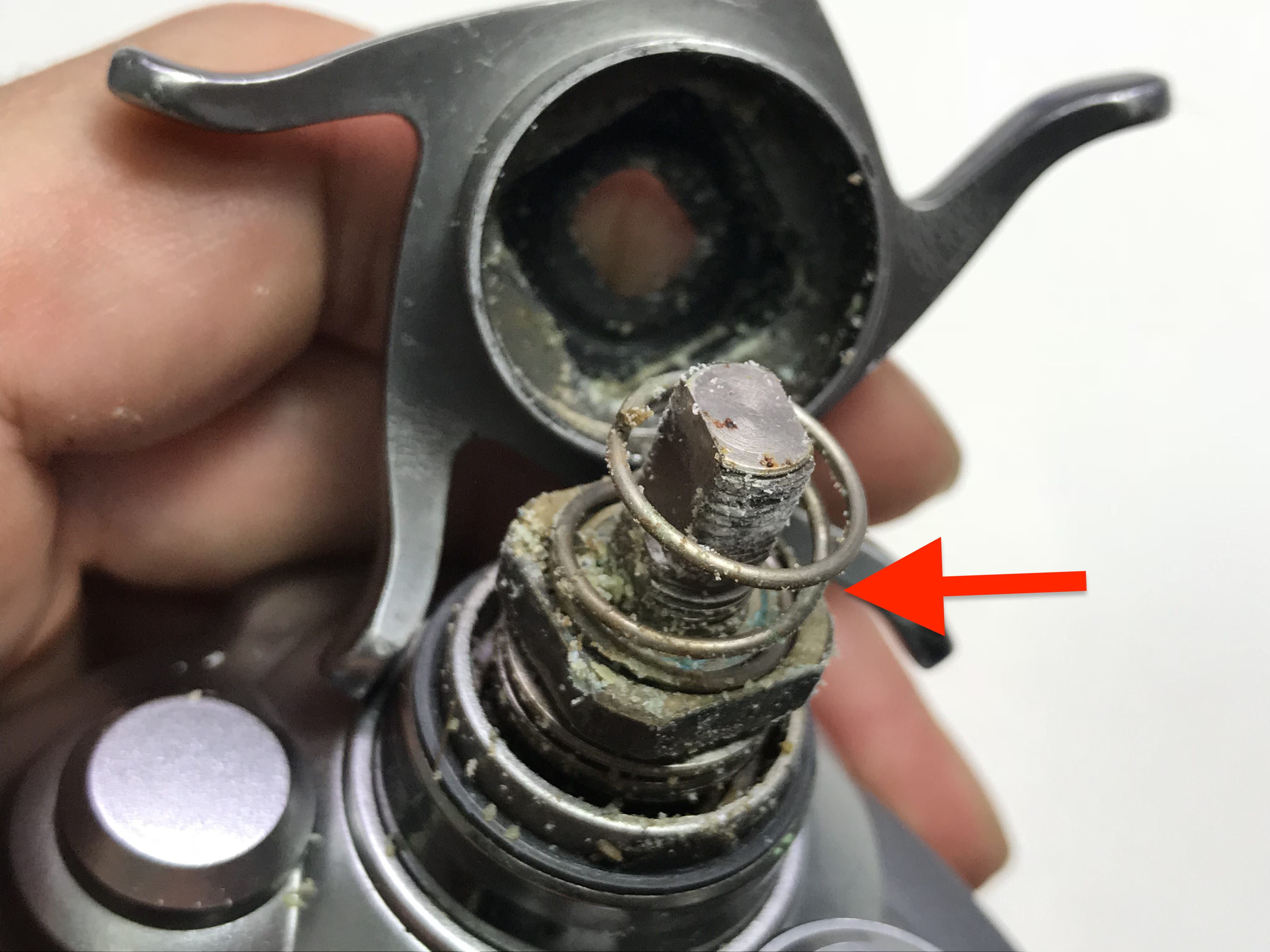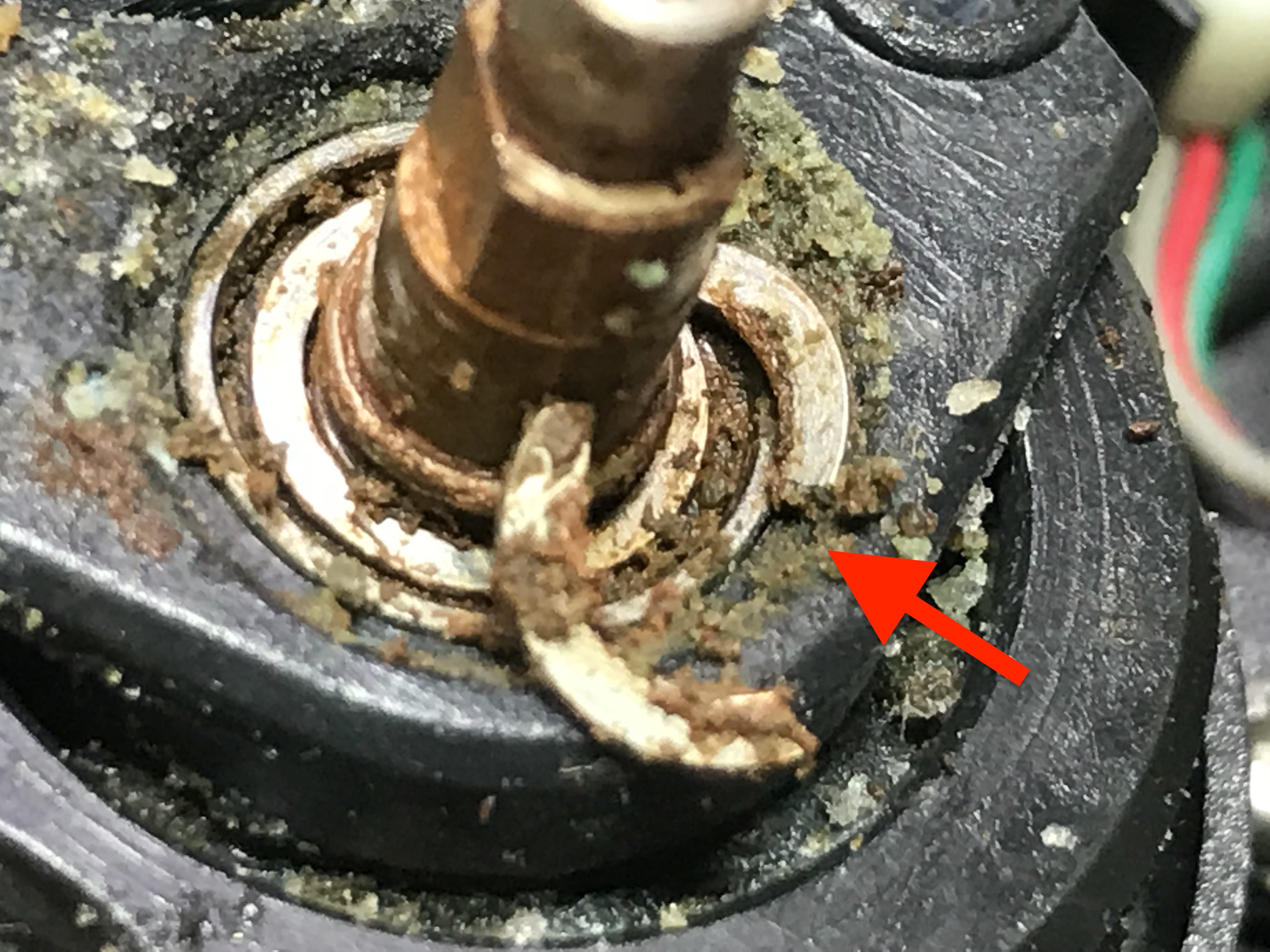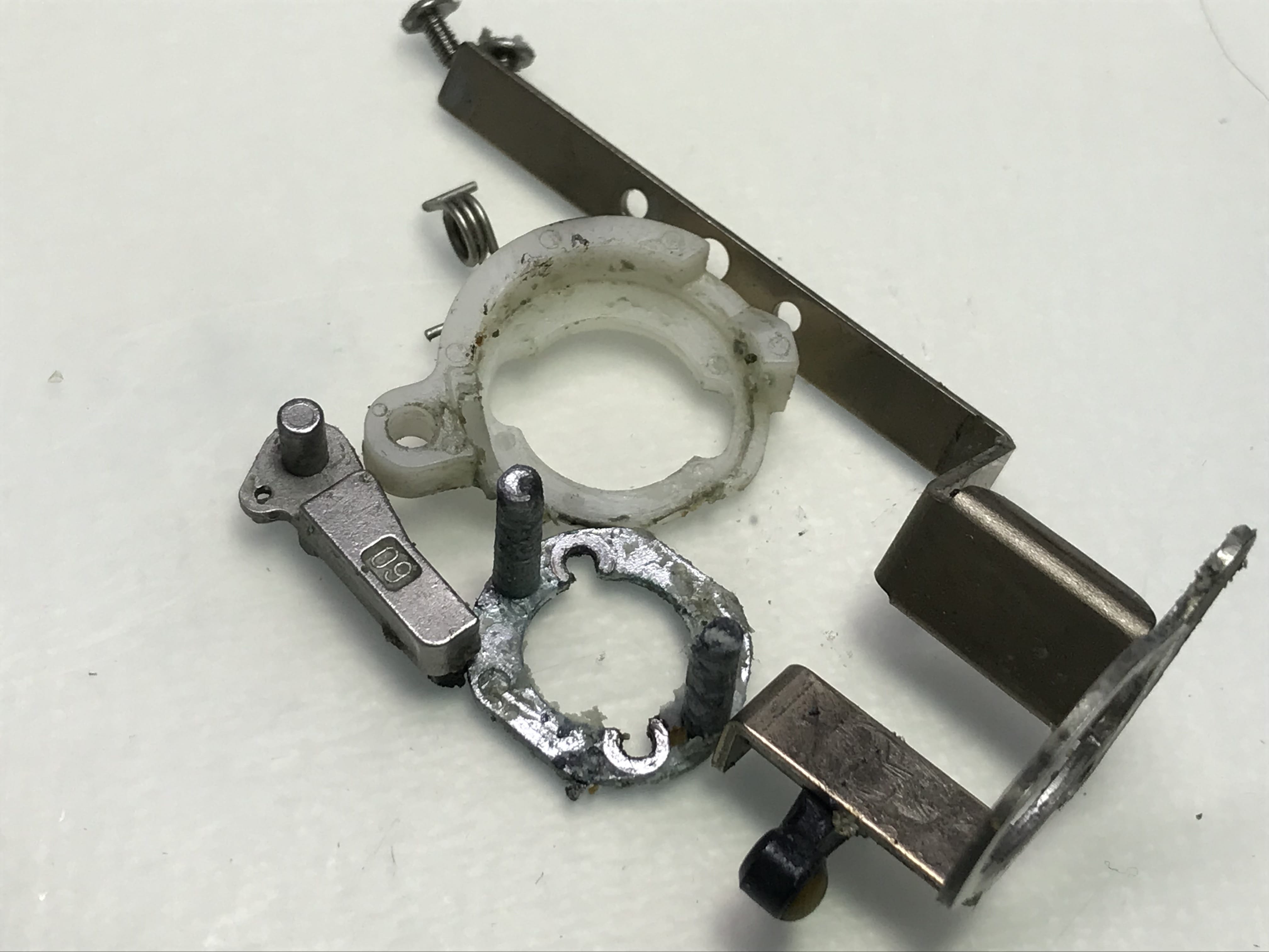 내부기어의 부품들 산화 및 녹과 고착으로 형태가 잘 보이지 않습니다.