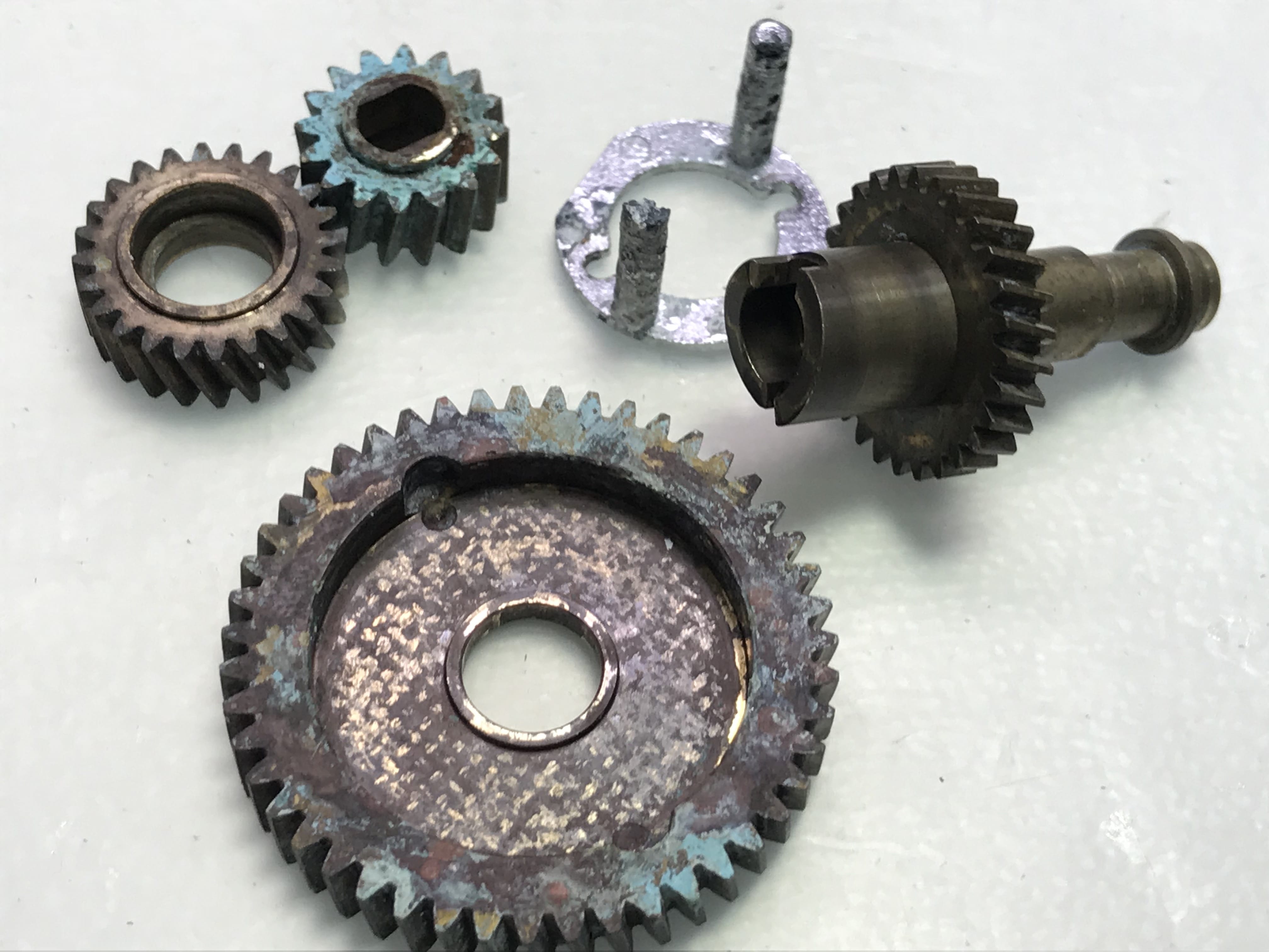 드라이브기어와 황동기어들 전부 소금고착으로 세척을 해도 떨어지지 않습니다.