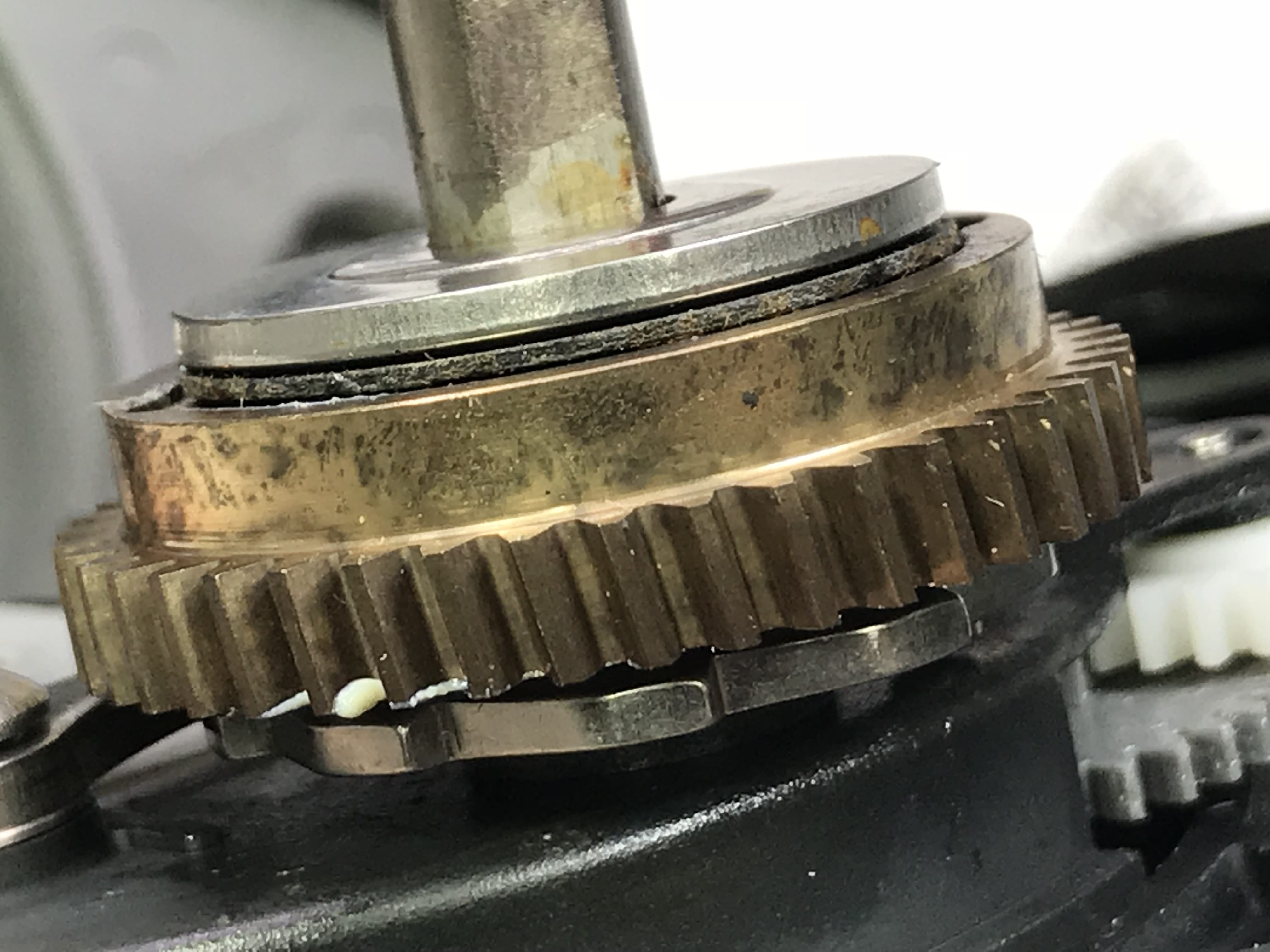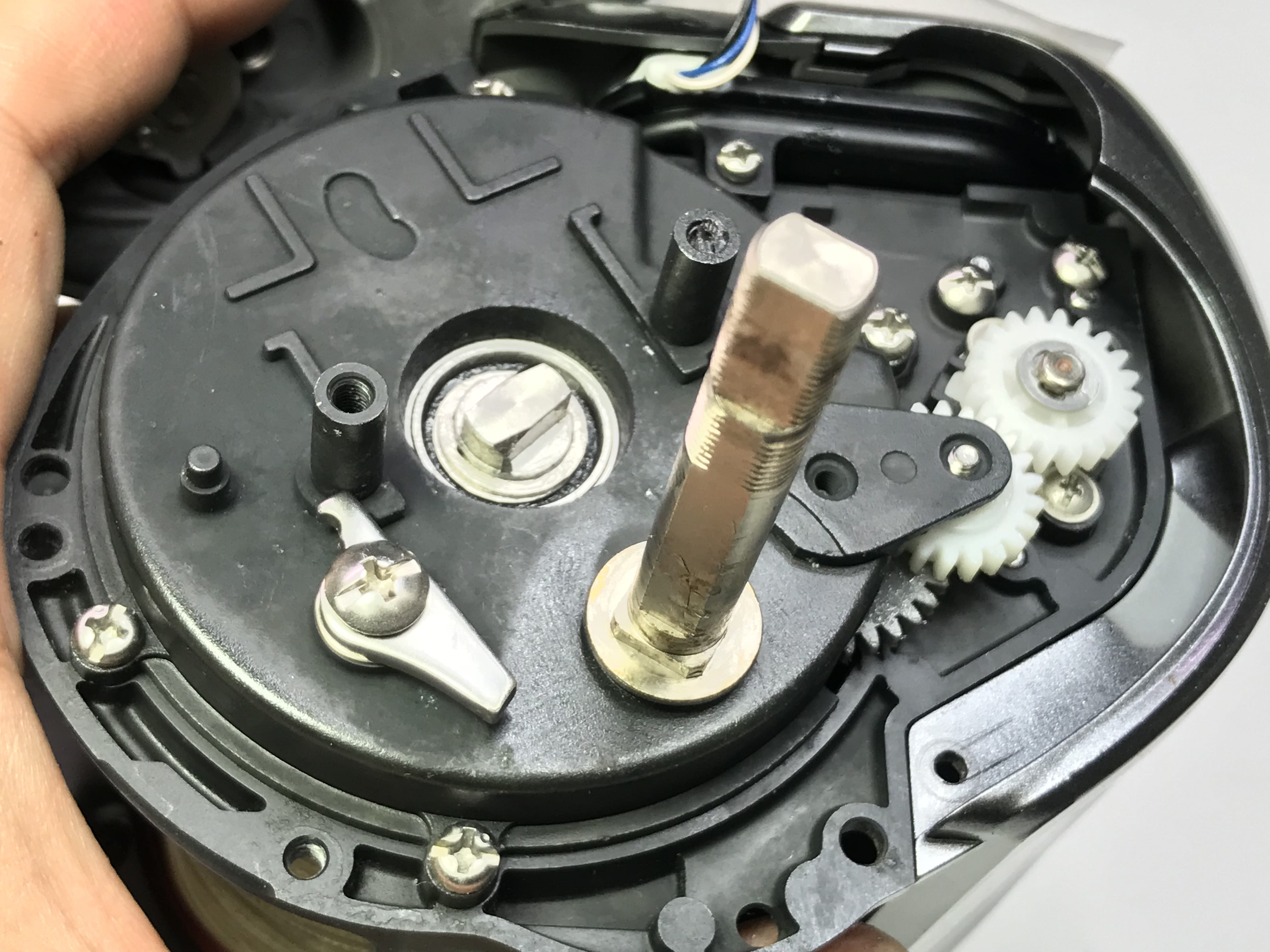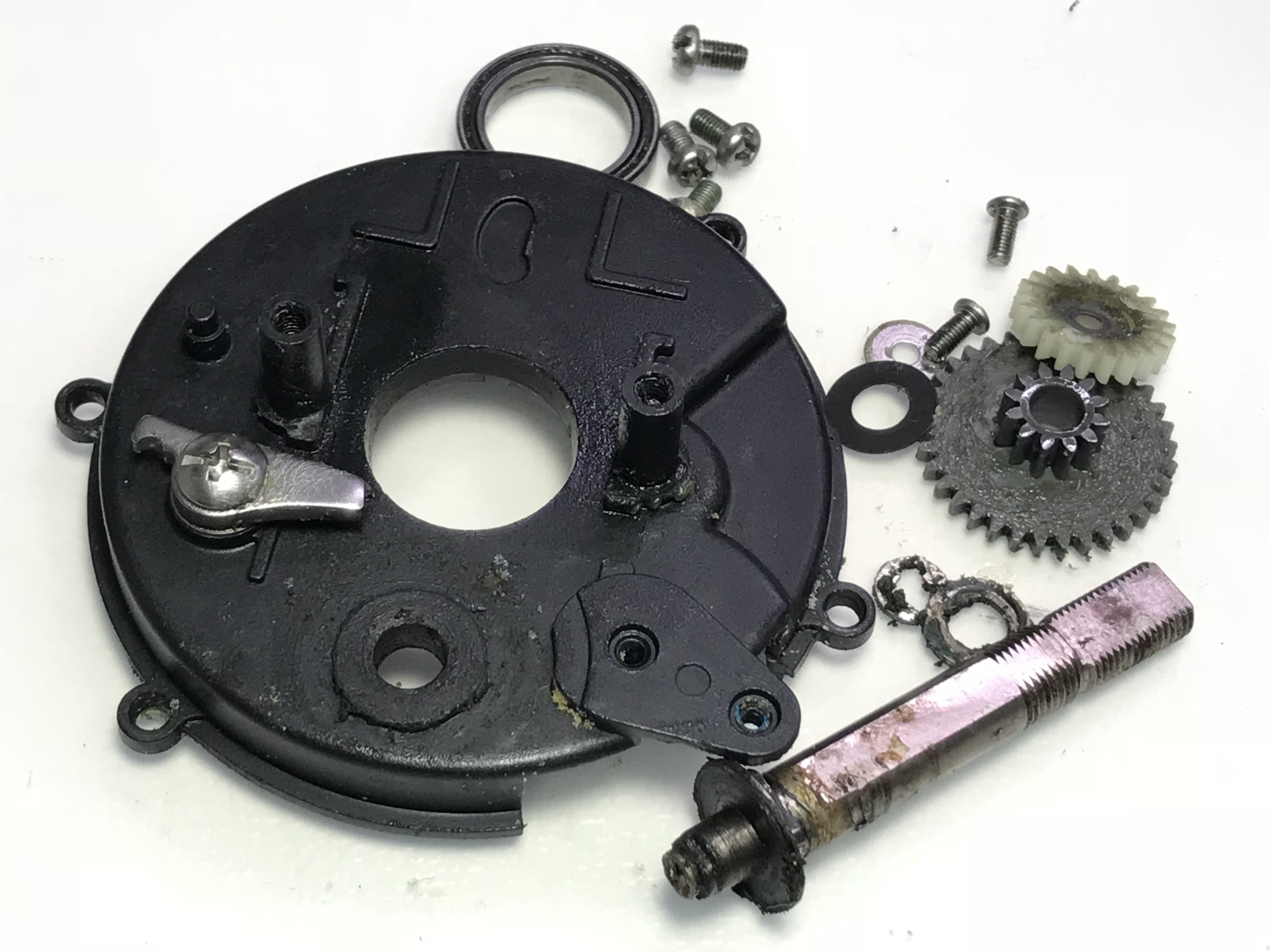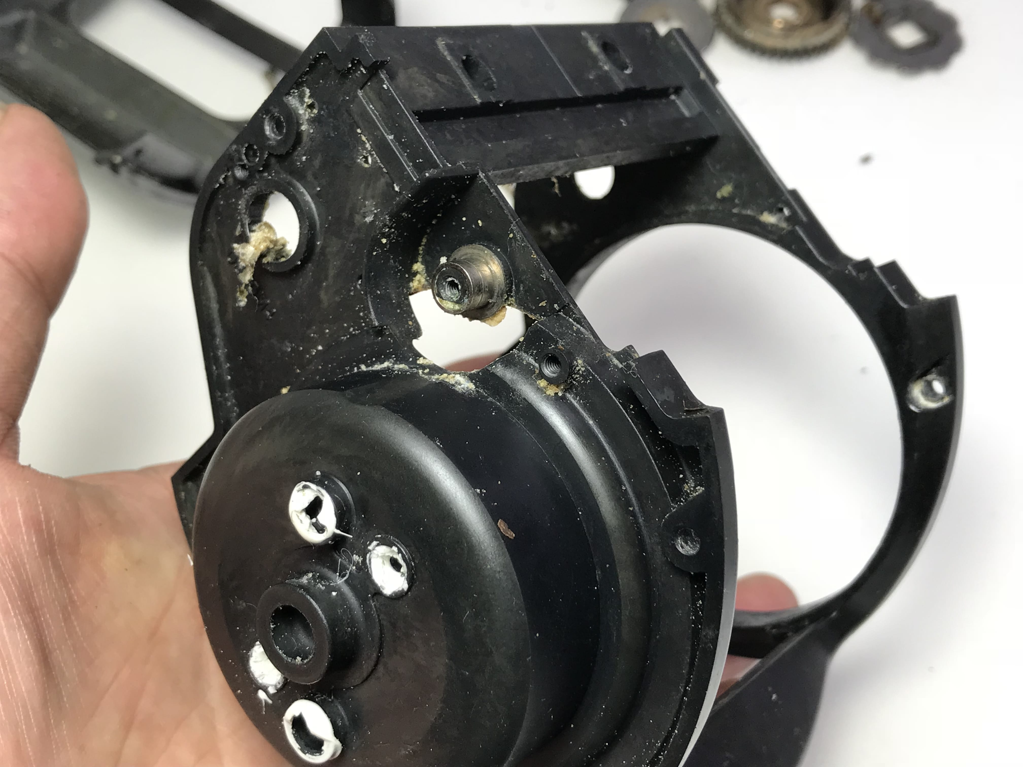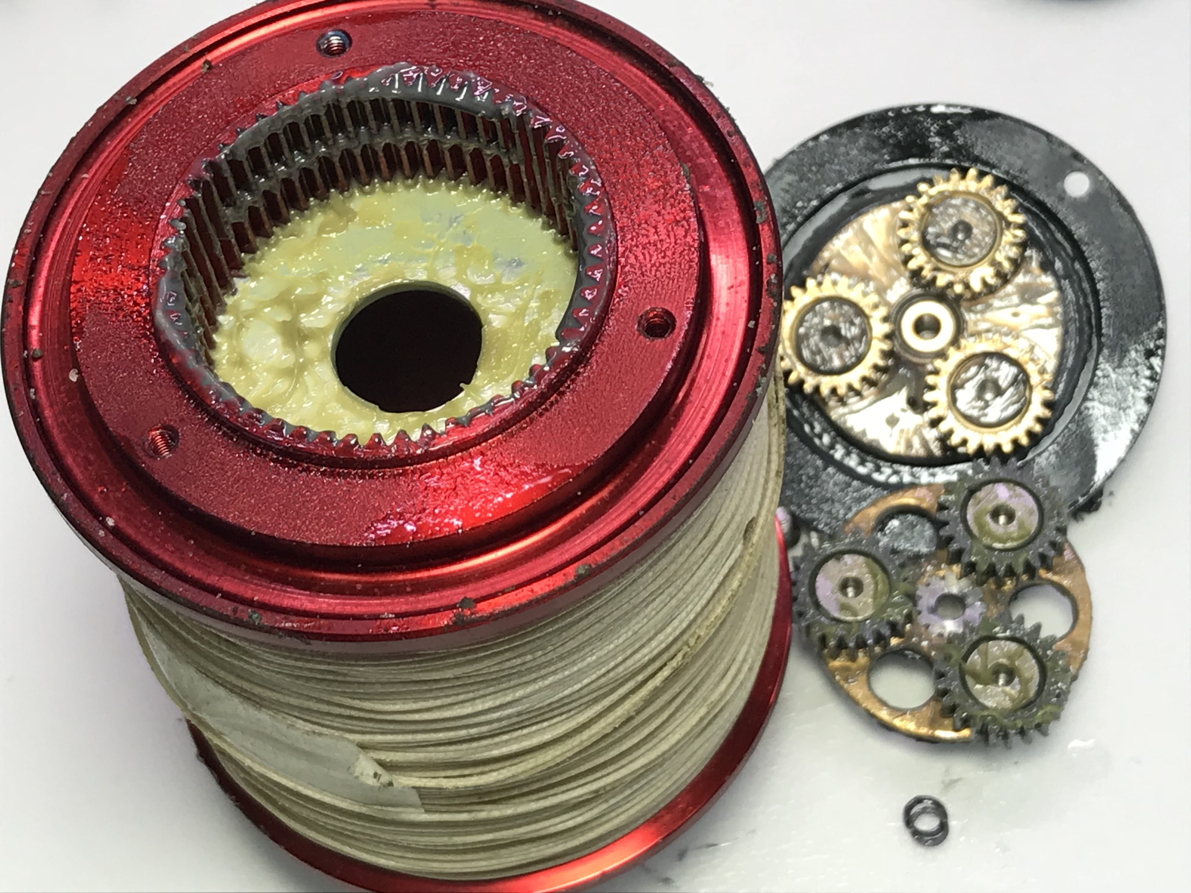 스풀내부의 감속기어와 구리스들도 색갈이