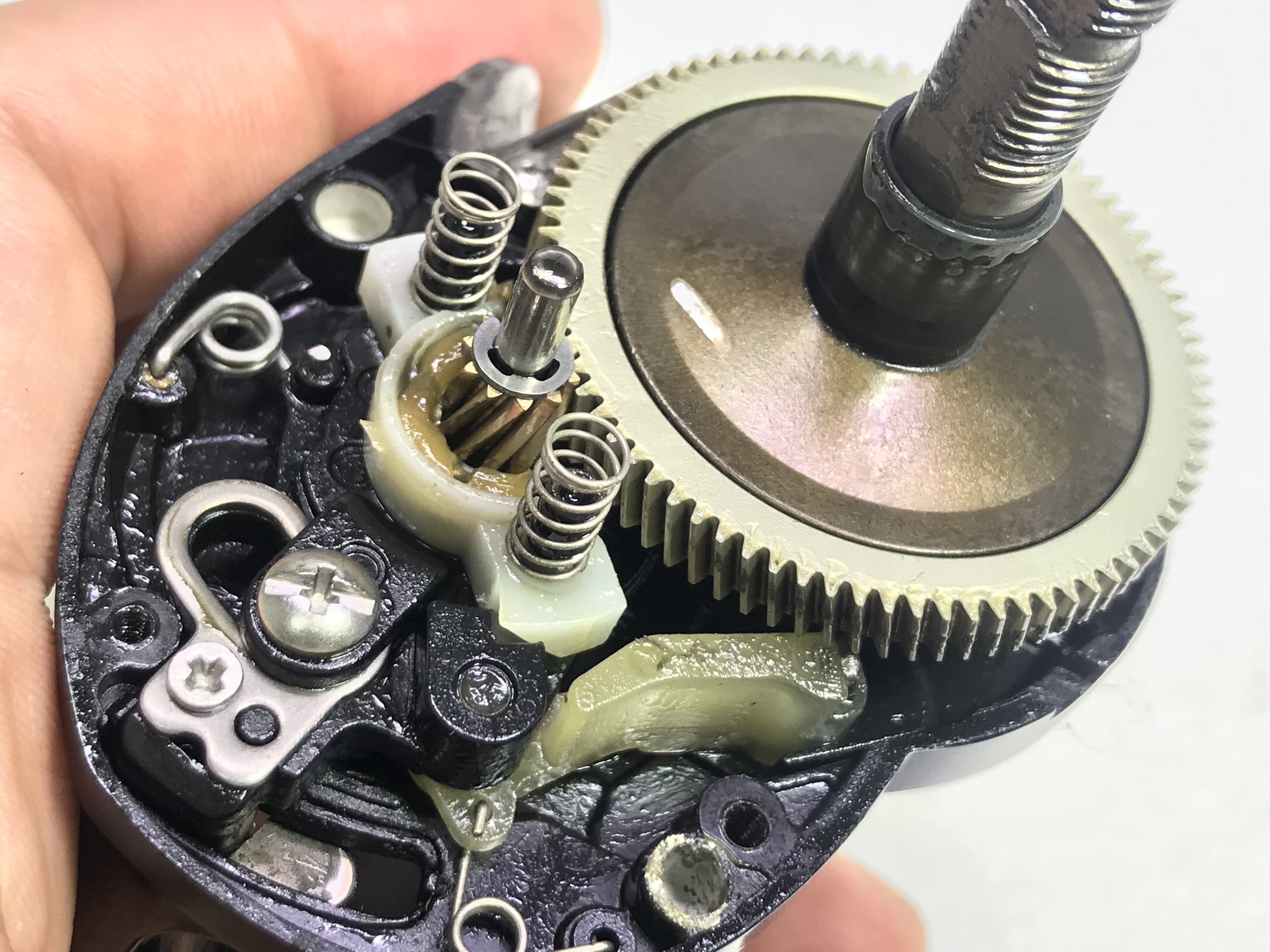 클러치레버와 내부 부속 웜기어와 레벨와인더 전부 분해 완료 합니다.