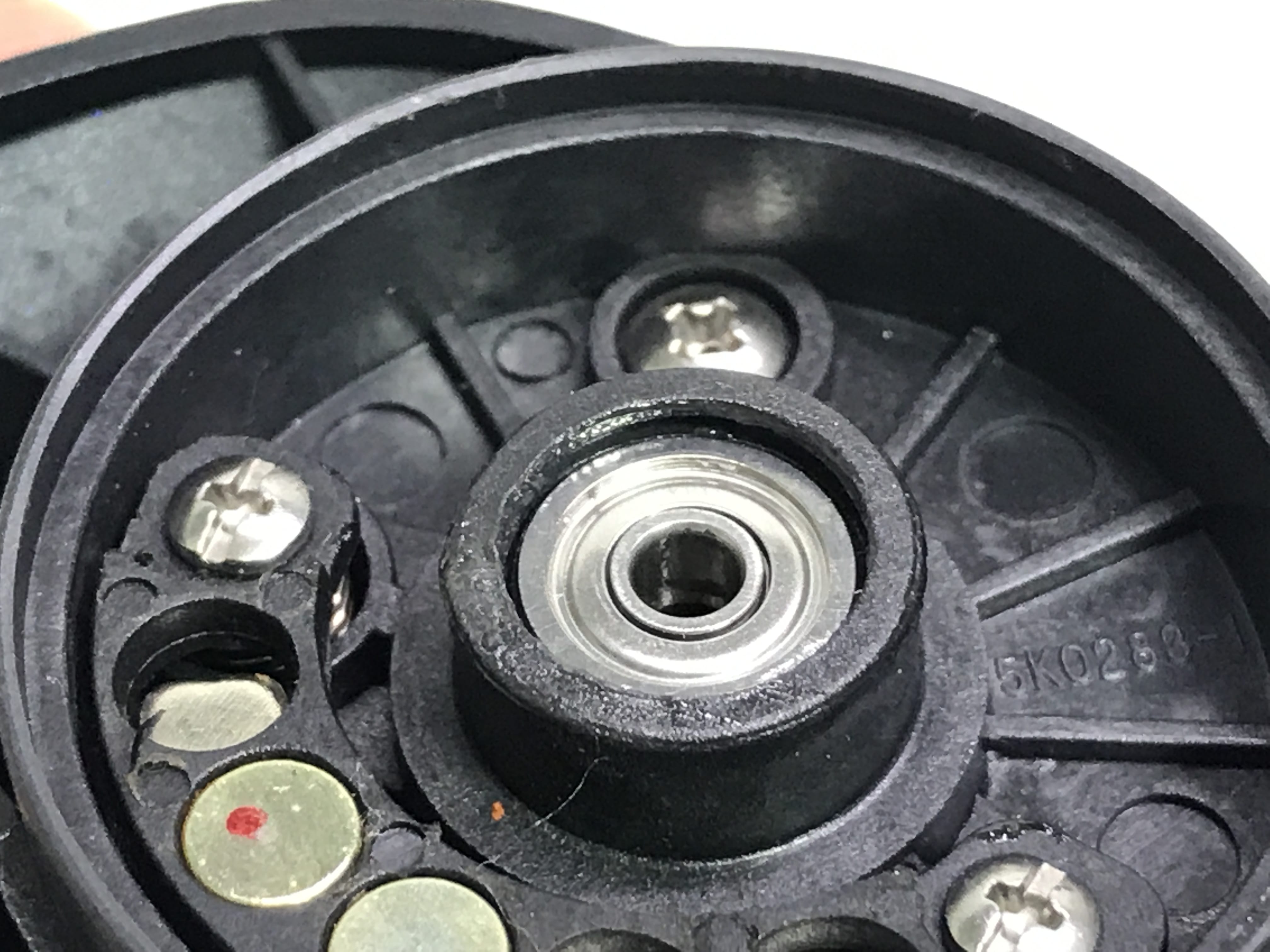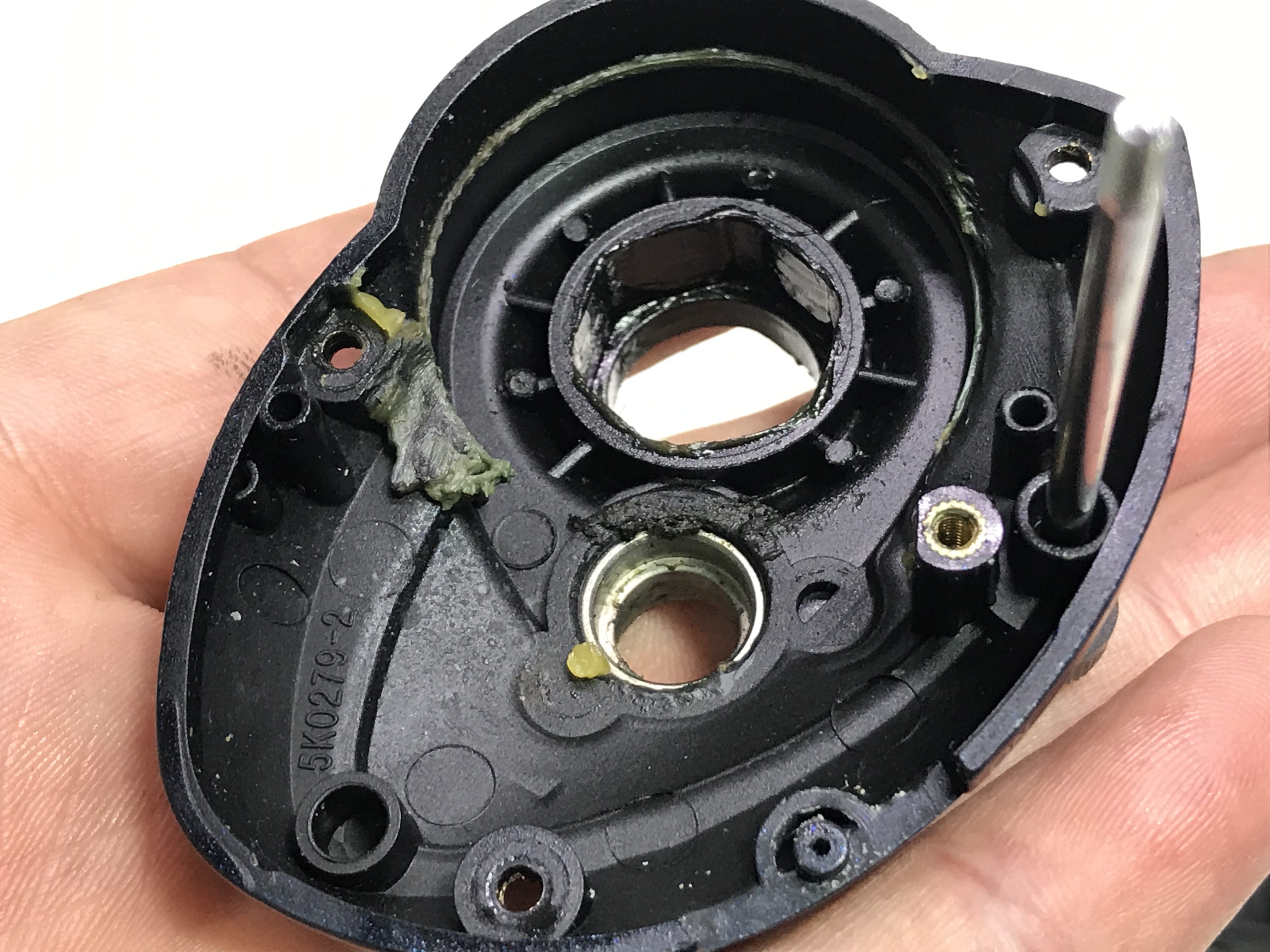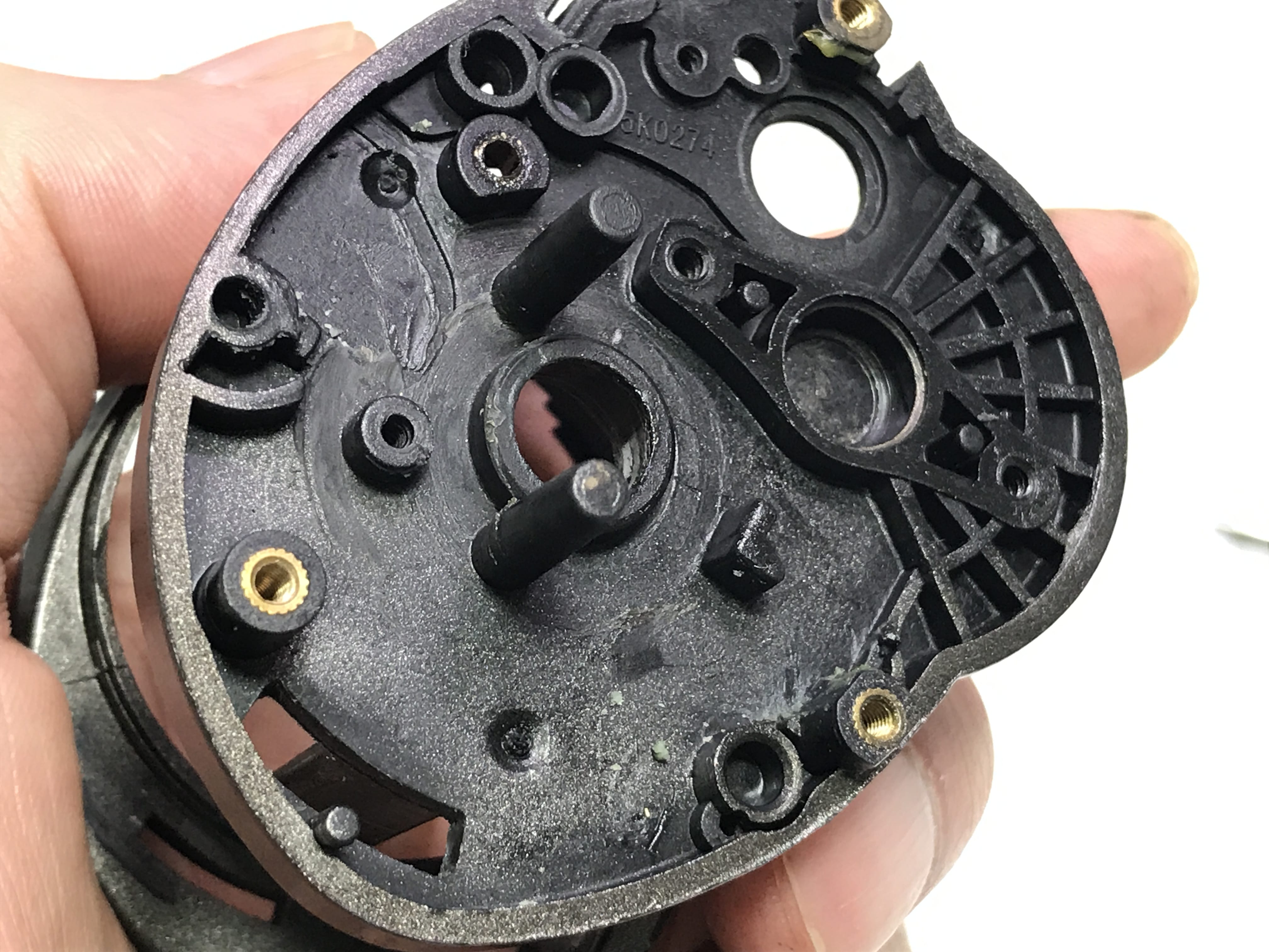 내부 개봉해 보니 화살표 부위의 부품이 마모가 심합니다.