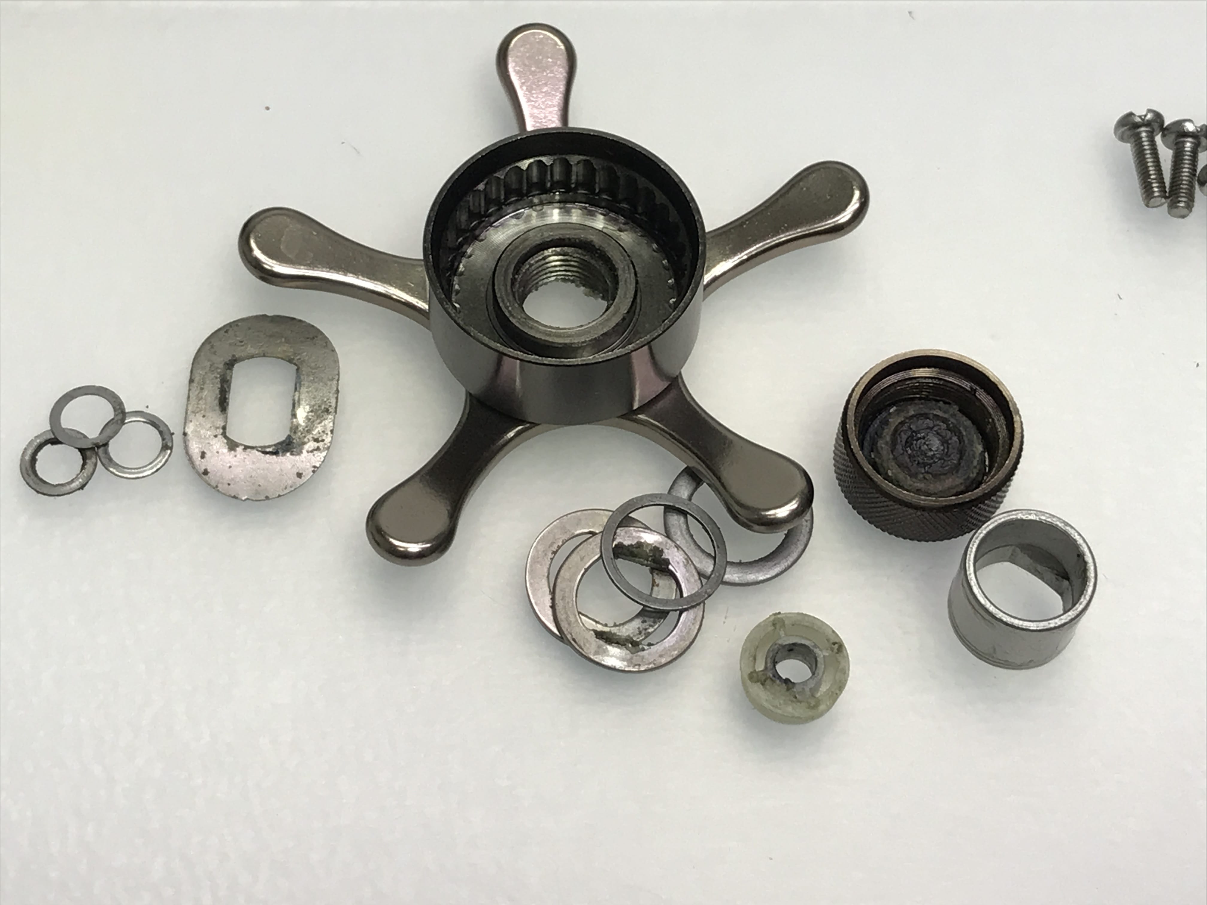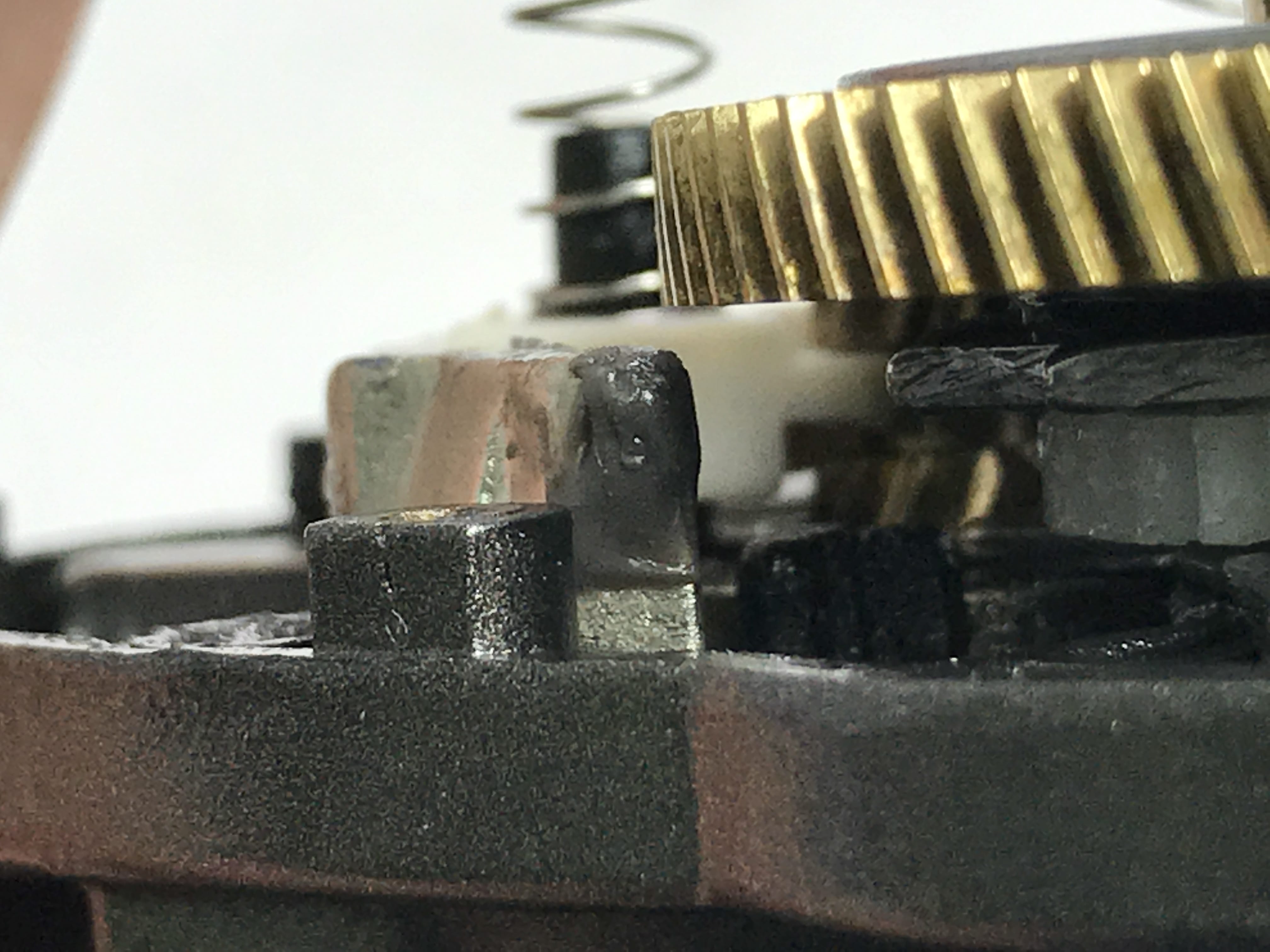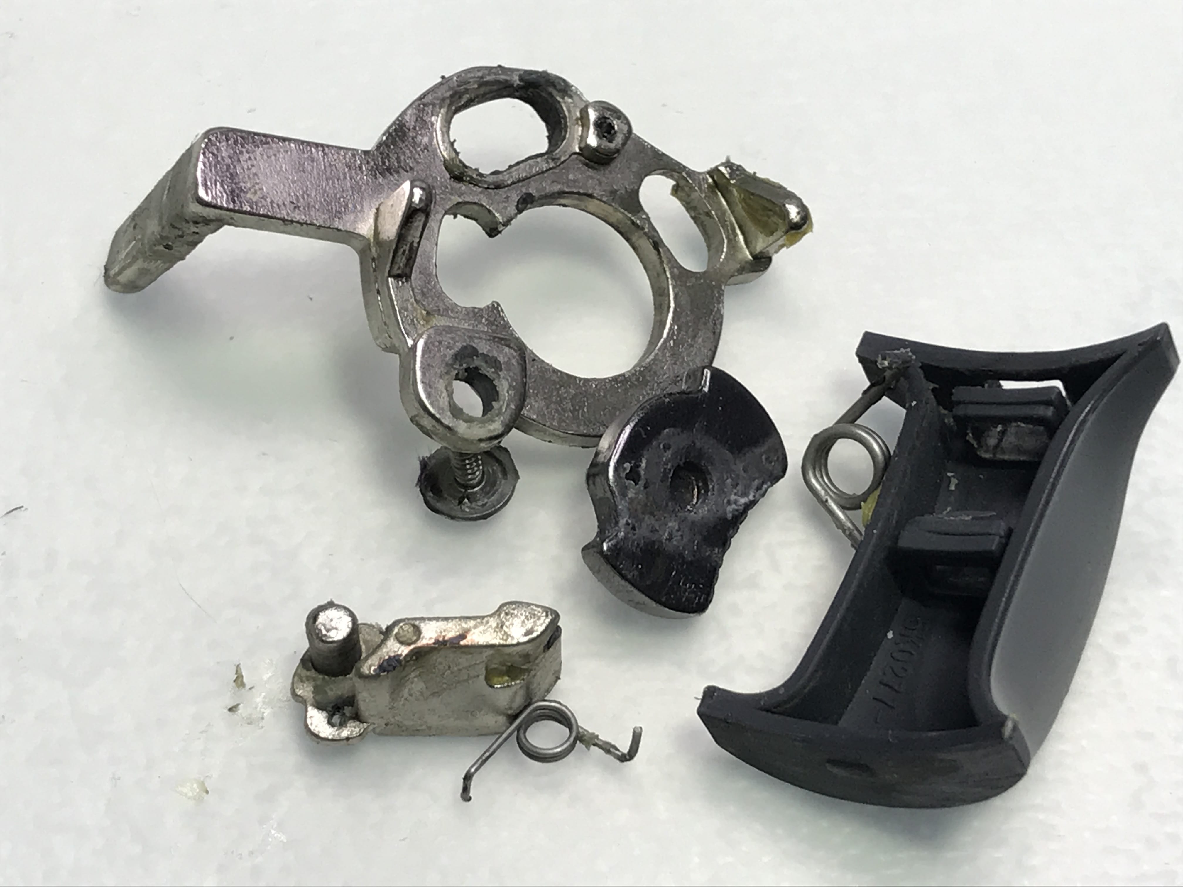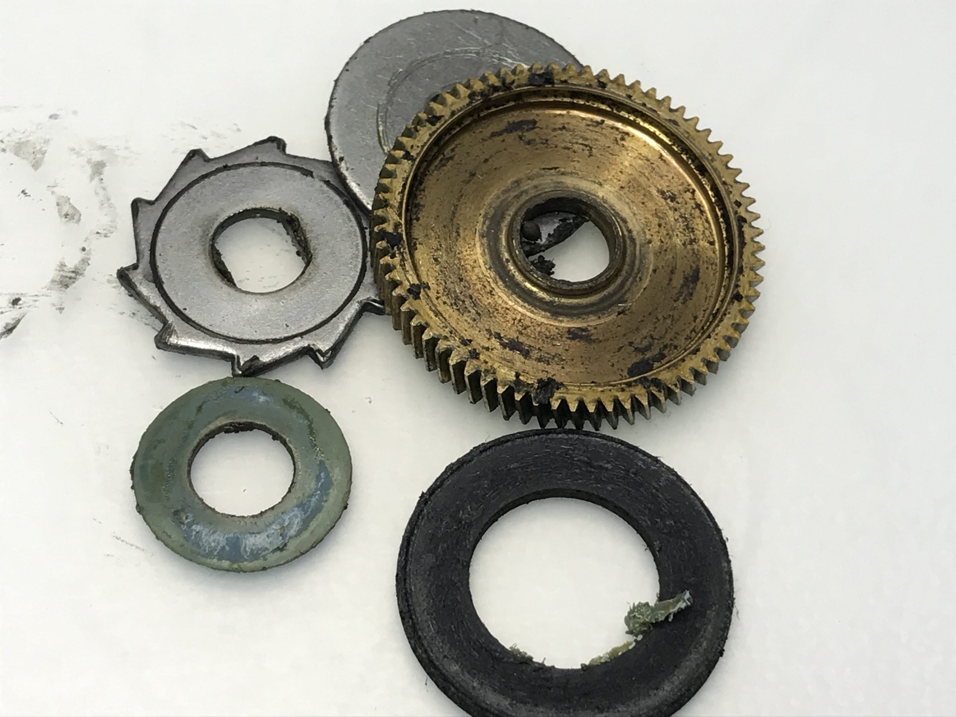 내부 개봉해 보니 화살표 부위의 부품이 마모가 심합니다.