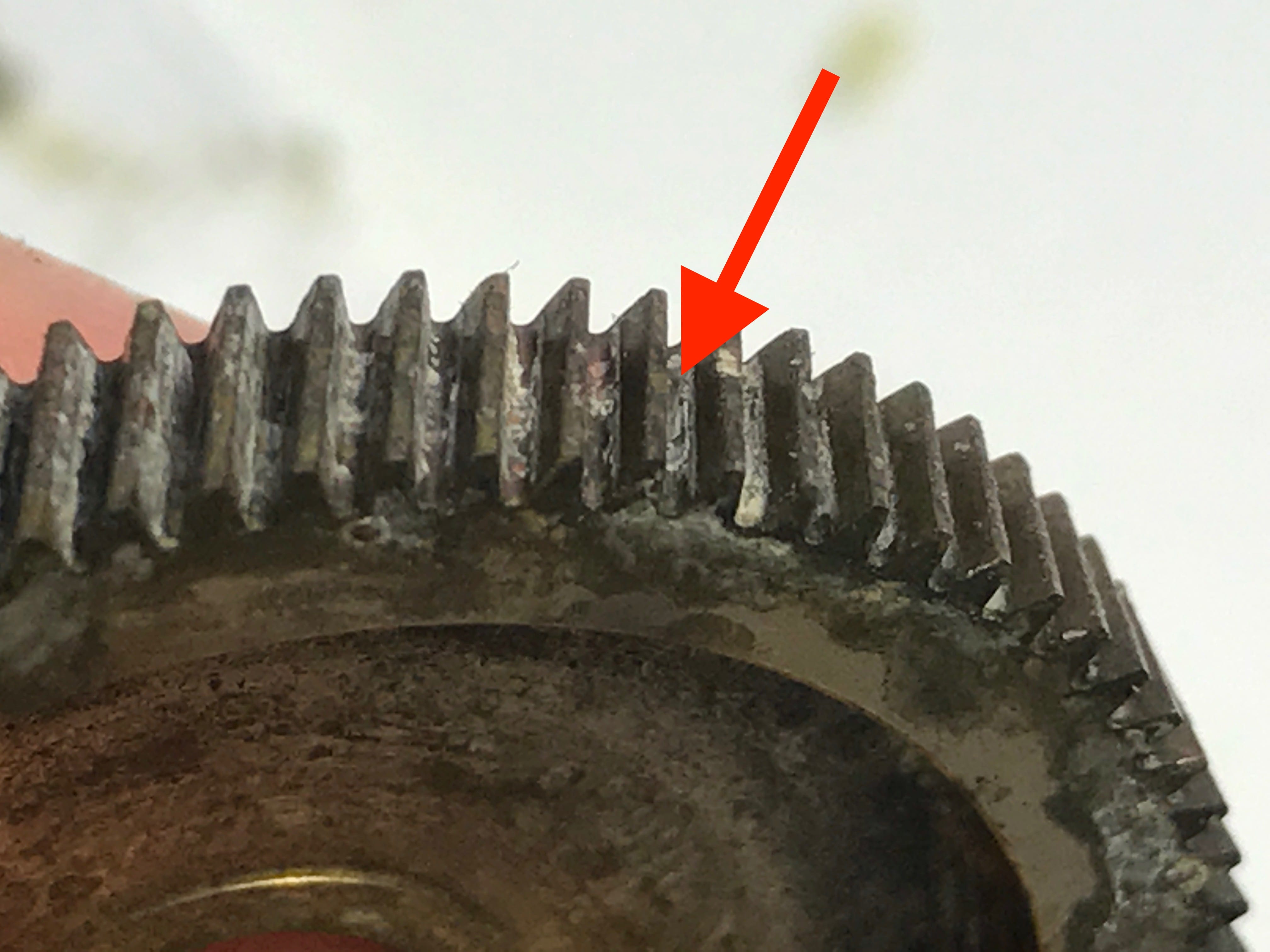 중요한 마스터 기어쪽도 기어사이사이 연분이 떨어지지 않습니다.