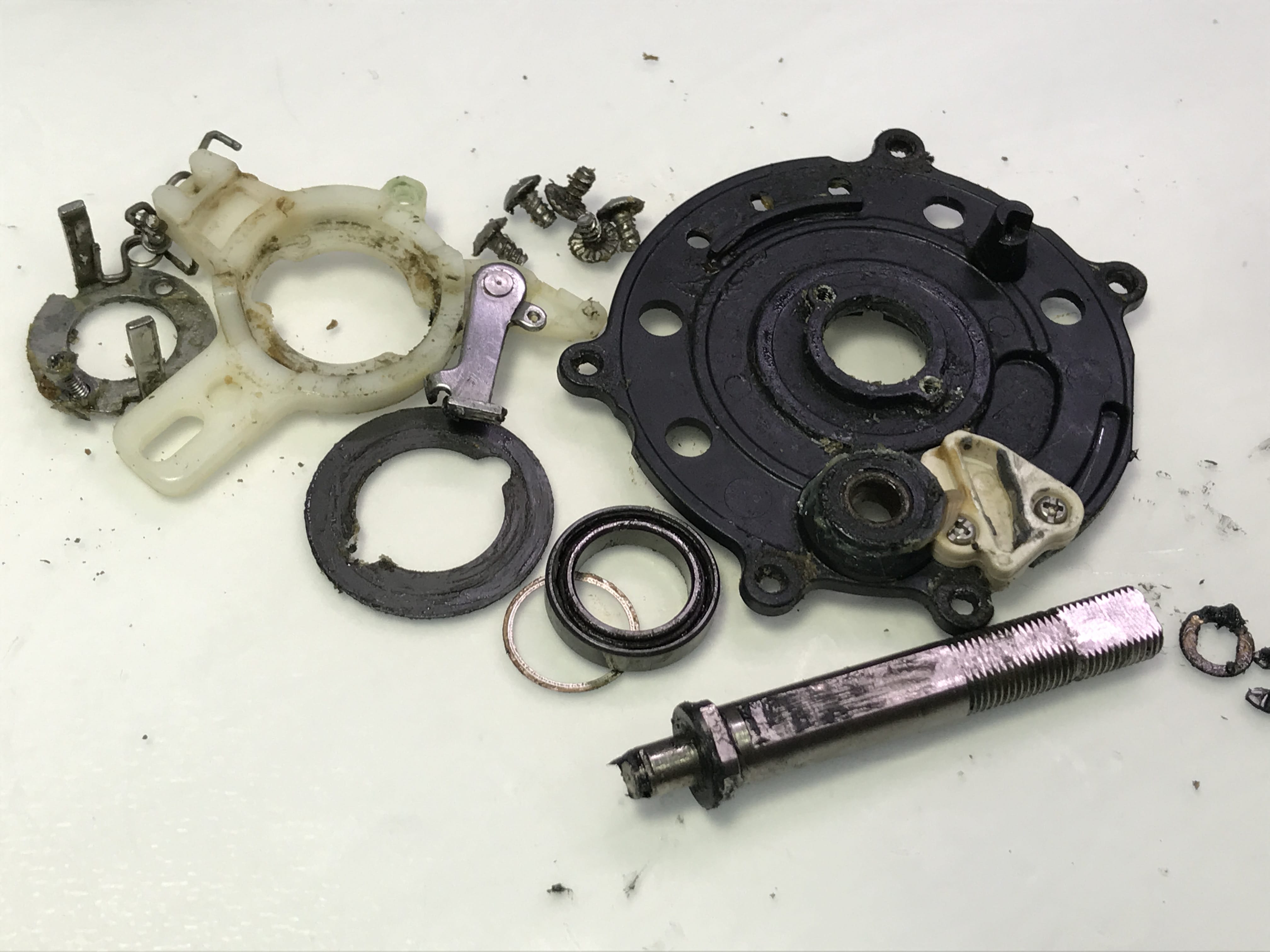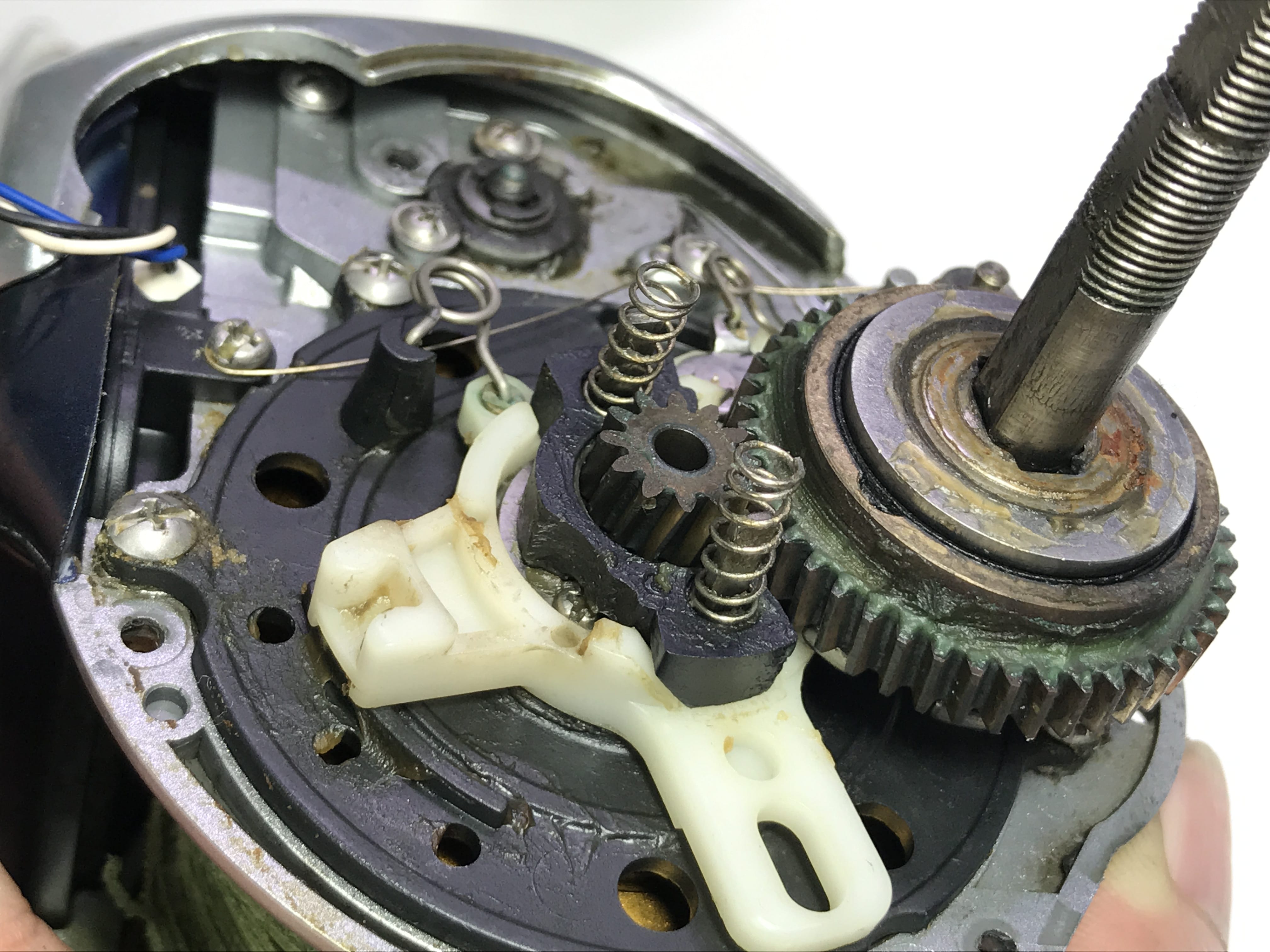 앞쪽 레벨와인더 구동부도 분해 완료합니다.